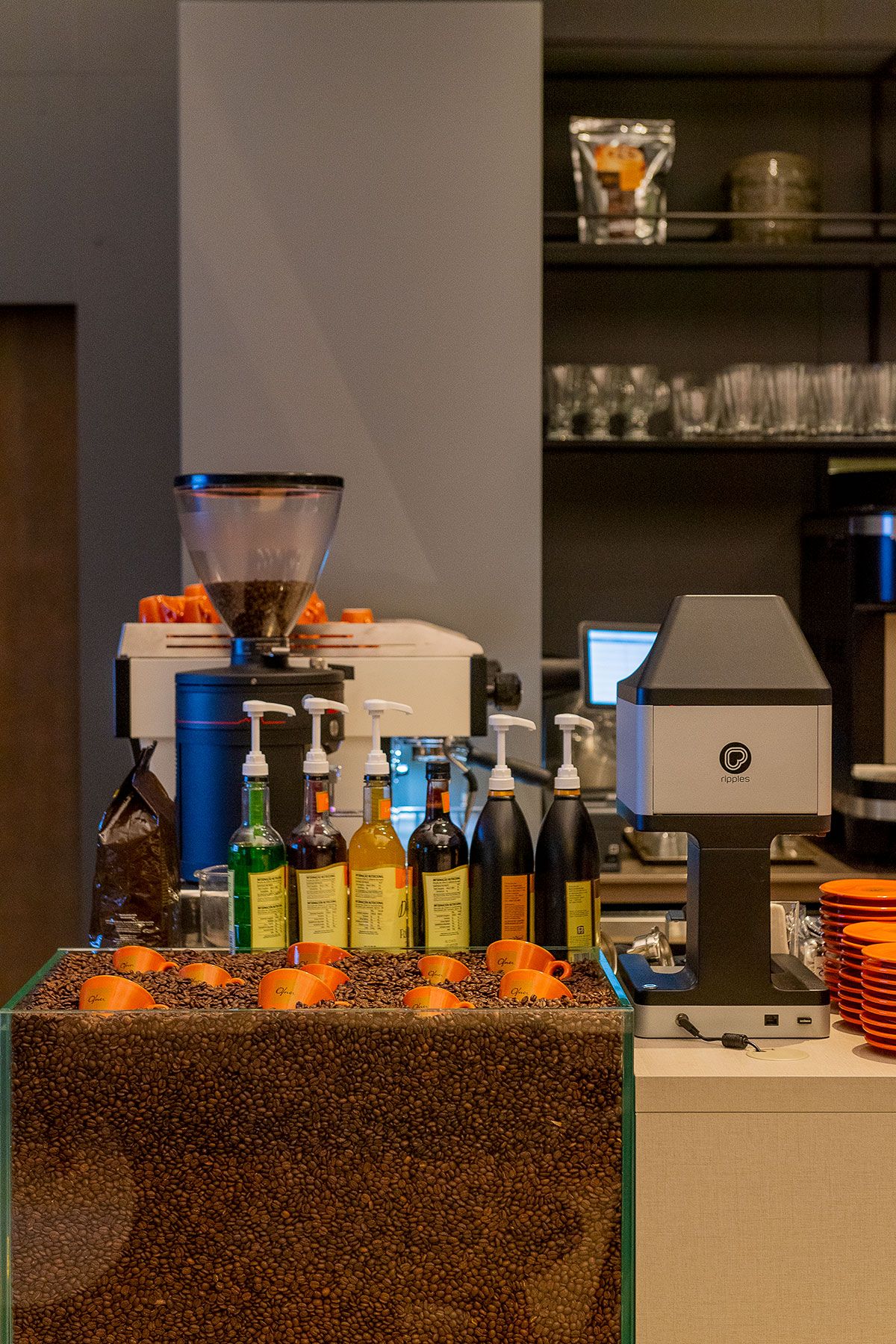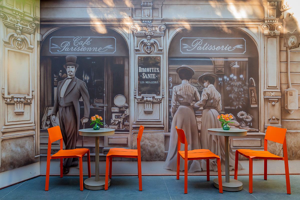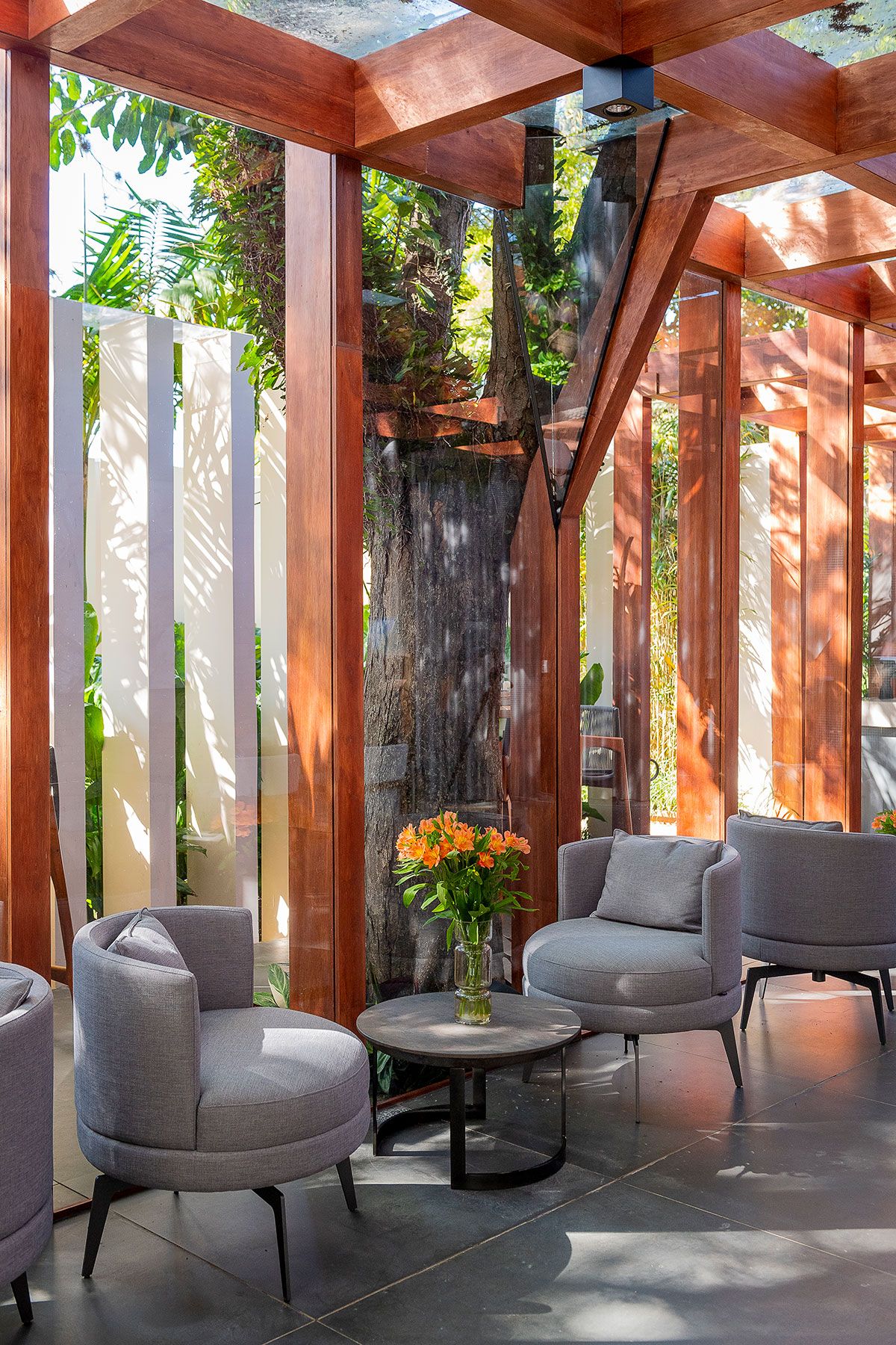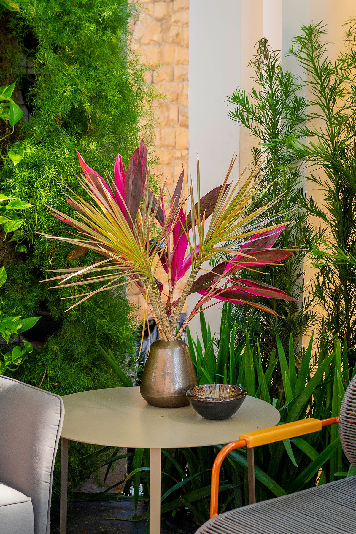 A designer pensou nas diferentes personalidades, preocupando-se em criar formas de receber bem quem procura por um minuto de relaxamento. Jóia criou dentro do macro, pequenos universos orgânicos nas diversas formatações de mesas para que os clientes se sintam à vontade, seja na mesa coletiva, no deck ou sozinho, curtindo uma boa música ou livro.