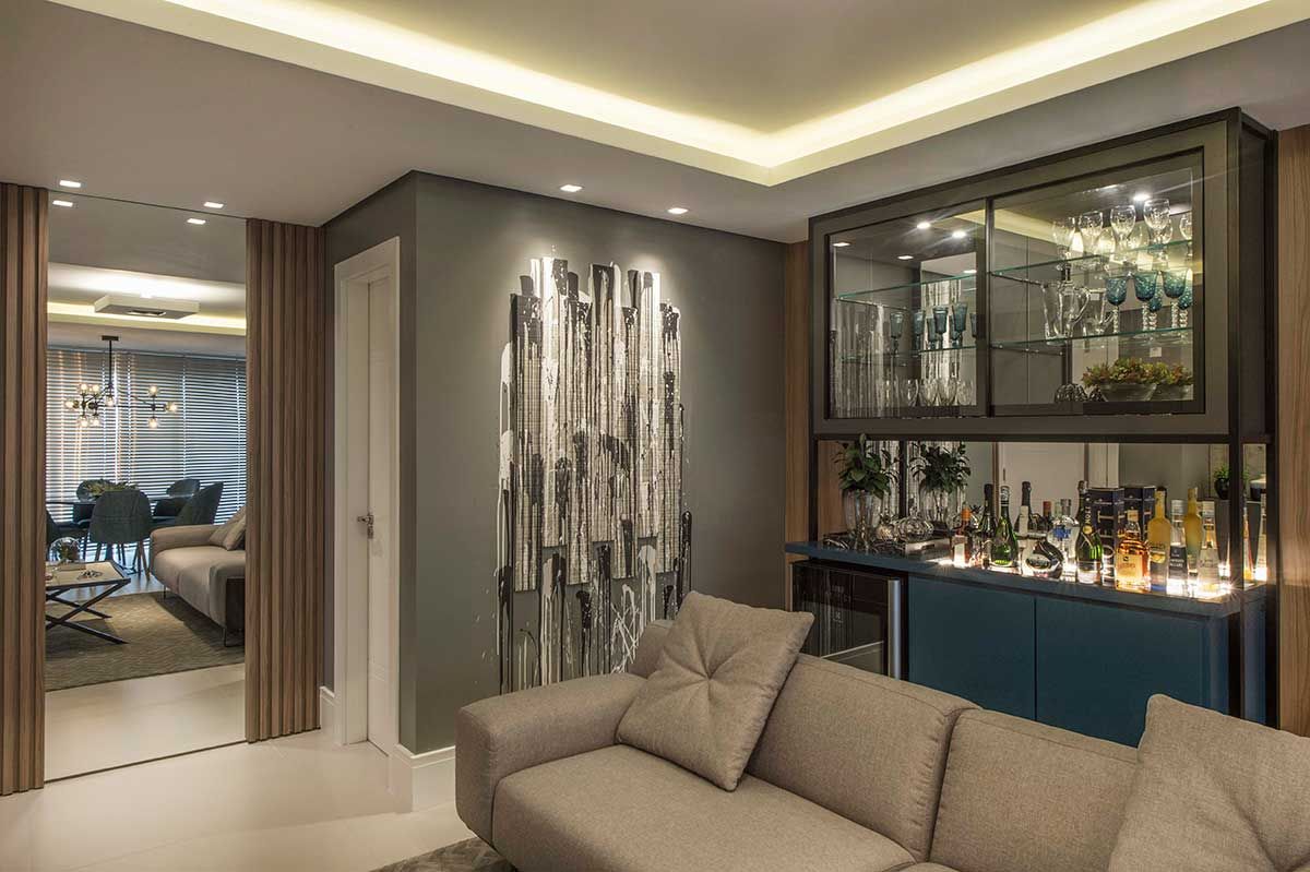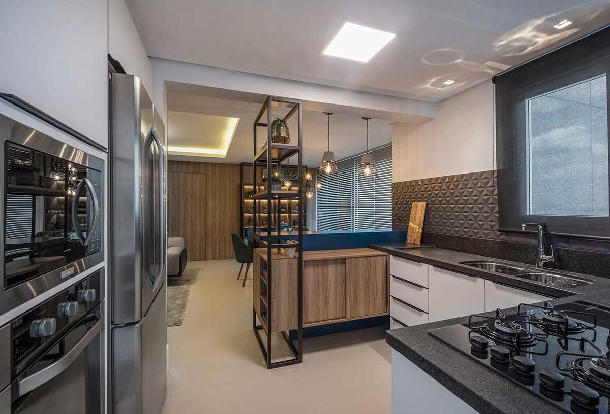 O escritório Tamara Rodriguez Arquitetura assinou o projeto desse apartamento de 100 m², em Esteio, no Rio Grande do Sul. O cliente jovem e solteiro pediu que o apartamento ficasse clean e funcional, pois seria a sua primeira morada.