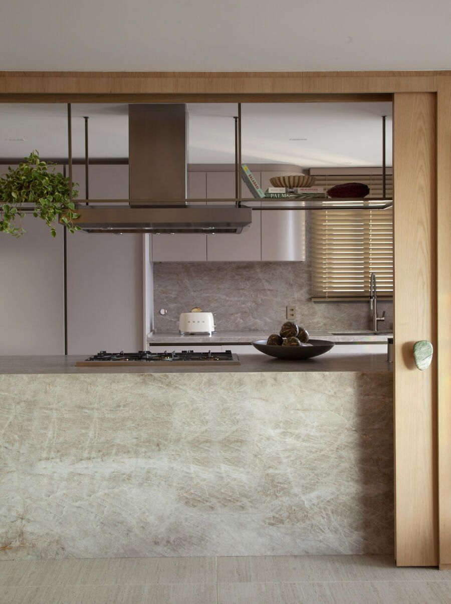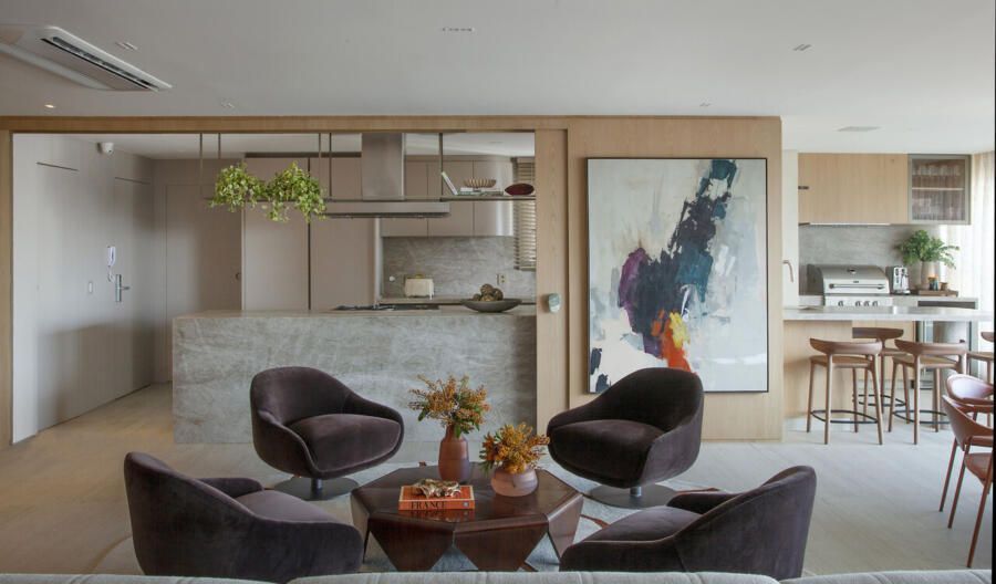 Quando se casou, a empresária chegou a cogitar trabalhar com Deborah, mas naquele momento a parceria não se concretizou. O tempo passou, a família cresceu e a oportunidade ressurgiu com a compra do novo apartamento. Desde o início, o pedido era claro: criar uma casa pensada para receber, onde cozinhar, conversar e compartilhar momentos com amigos fizessem parte da rotina com naturalidade.