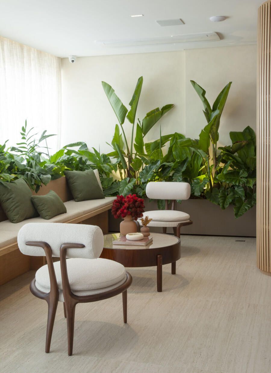 A decoração é majoritariamente nova, mas algumas peças carregadas de significado acompanharam a família na mudança e ganharam lugar de destaque. Entre elas está um quadro colorido recebido como presente de casamento e a icônica poltrona Mole, de Sergio Rodrigues, que pertence ao marido há anos e agora ocupa posição privilegiada no living.