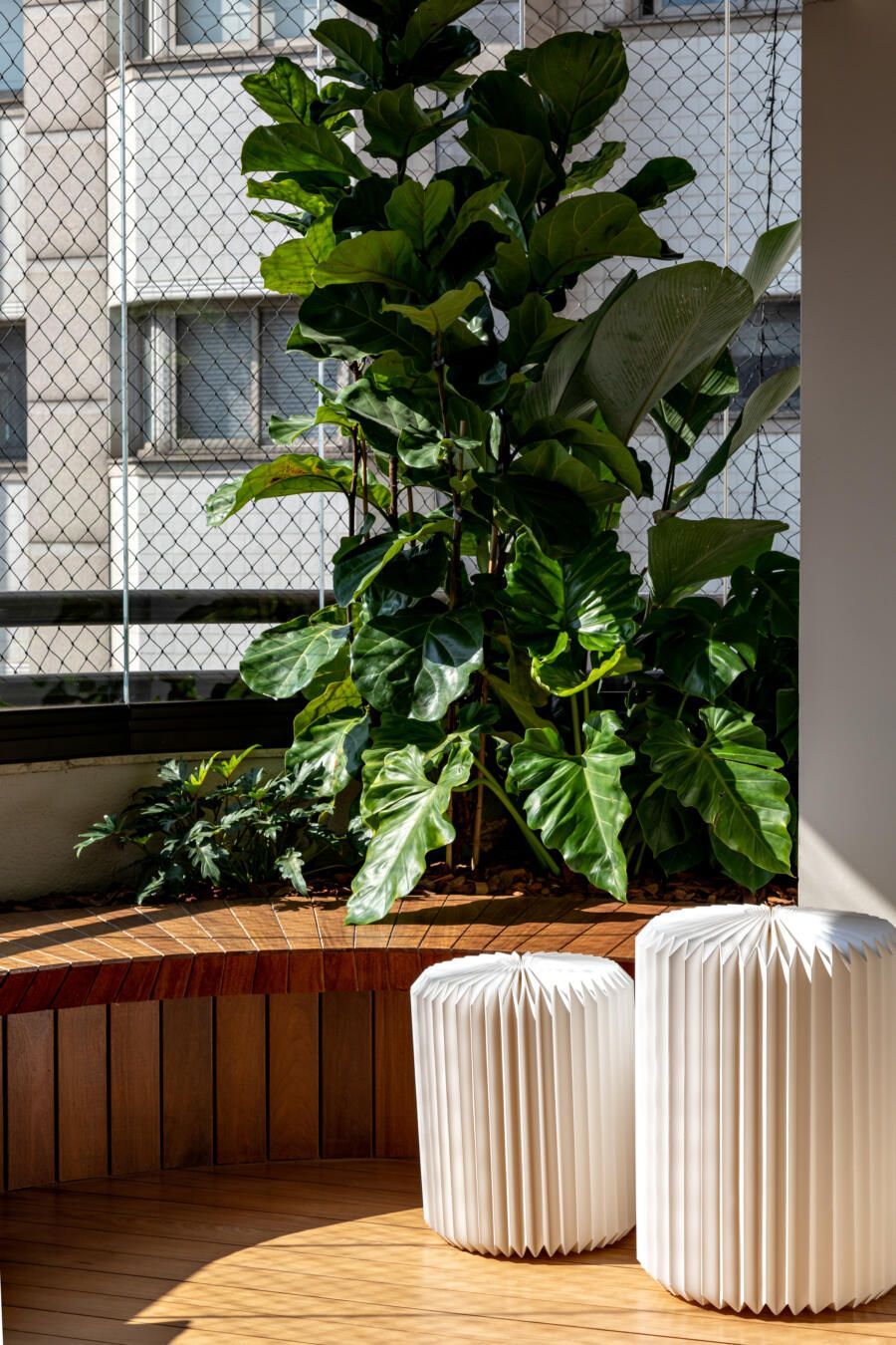 E na sala, vários elementos dão ainda mais personalidade ao apartamento.