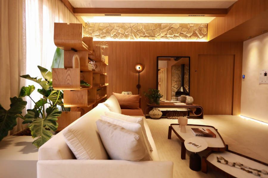 Living com madeira e pedra| CasaCor