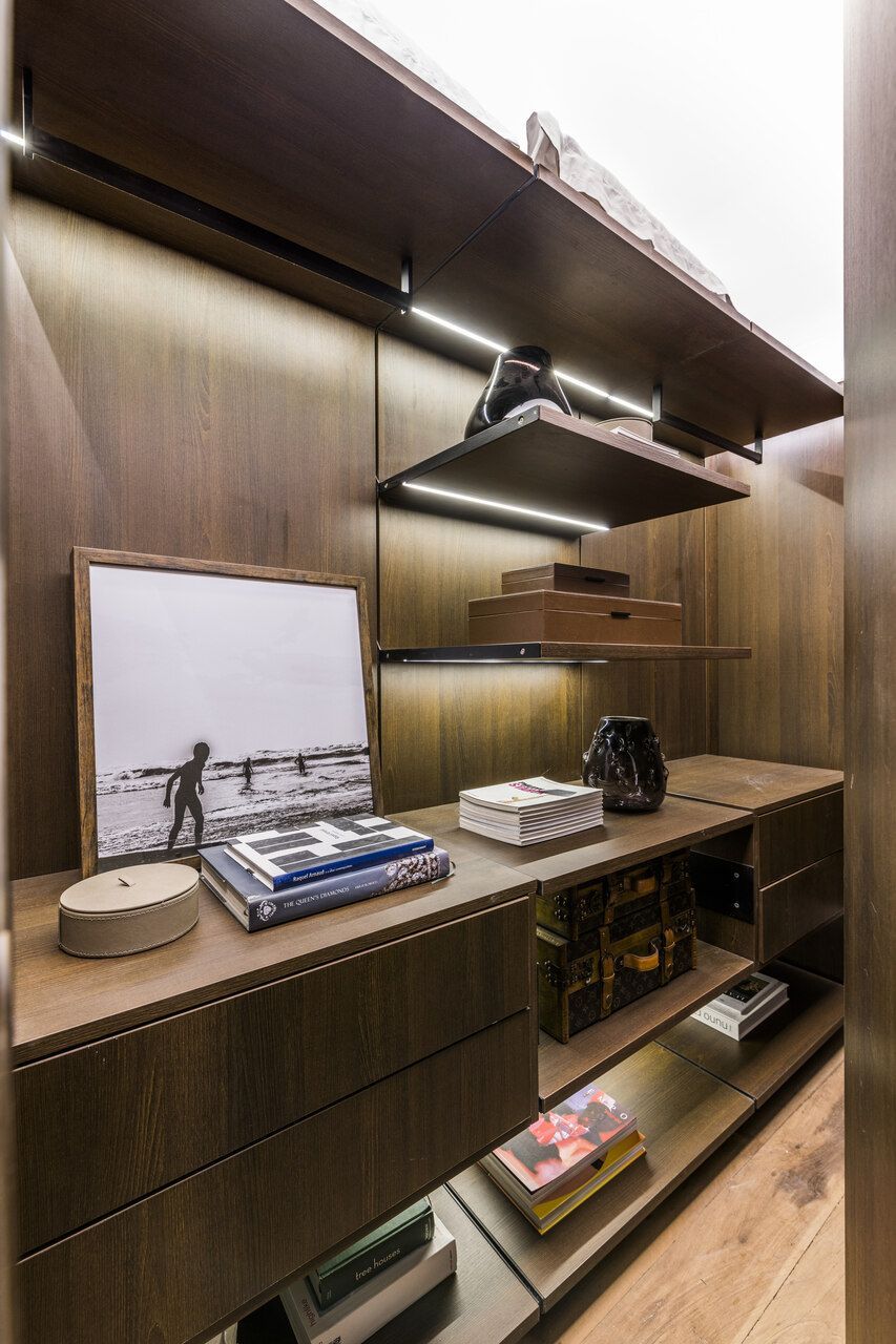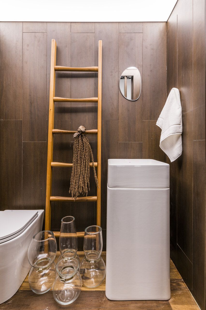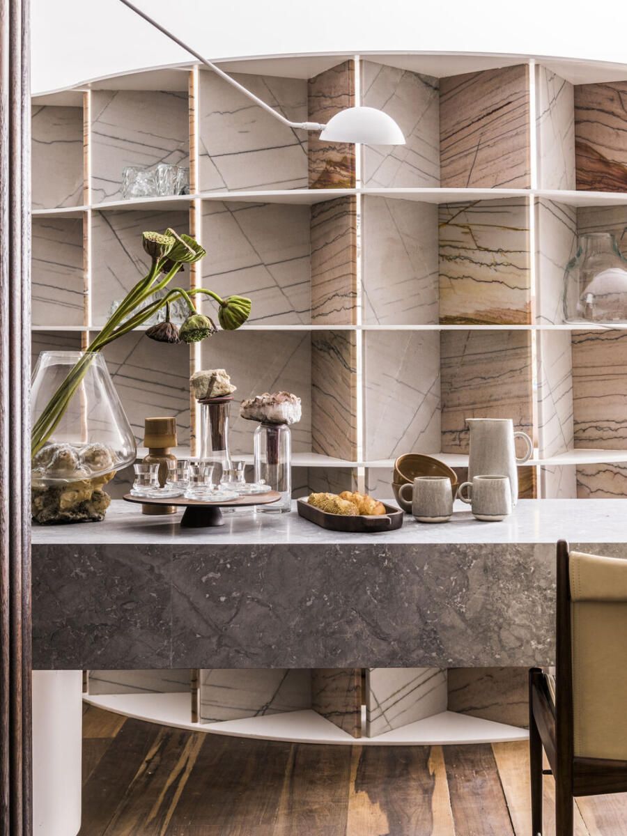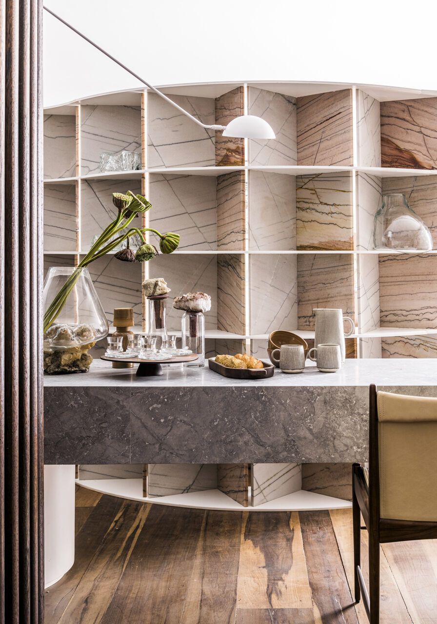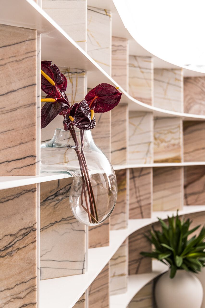 “Busquei inspiração no estilo cosmopolita que vivemos em São Paulo para criar o conceito. As cores criam uma linguagem ao mesmo tempo urbana e relaxante. Procurei criar um degradê com as cores das pedras, madeira e vidro.”