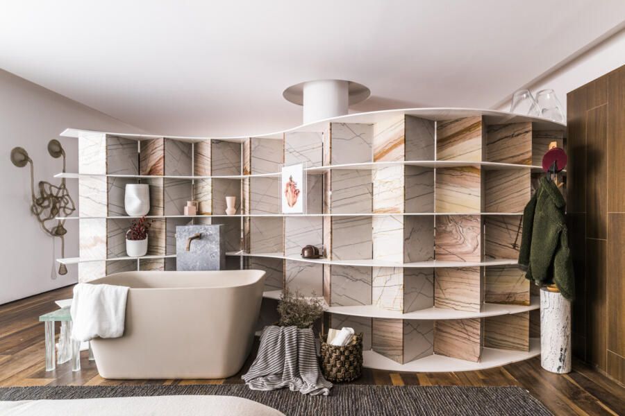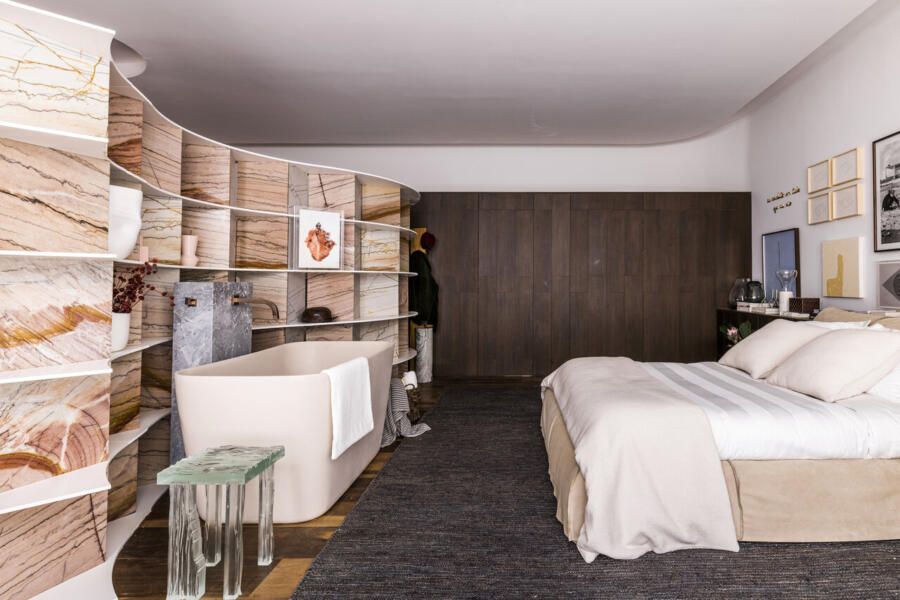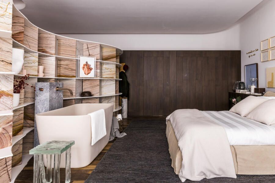 Com o foco em proporcionar descanso e momentos de relaxamento após a rotina corrida enfrentada na metrópole que é a cidade de São Paulo, o espaço é envolvido por uma aura pacífica, reforçada pela escolha dos materiais presentes no espaço. A ideia do ambiente surgiu a partir do tema da mostra, “Corpo & Morada”, como explica a arquiteta: