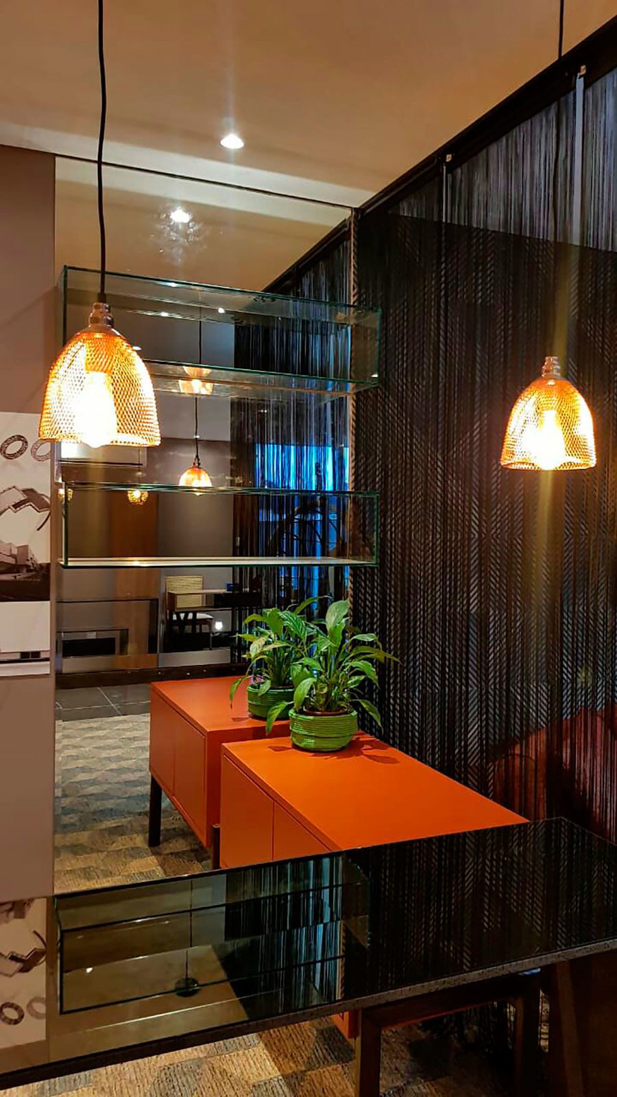 O espaço conta ainda com um lançamento da Amorim Cortinas, a Stillo Santorini, que possui duas faixas de tecido diferentes, uma translúcida e outra opaca, deixando assim que o espaço receba toda a luminosidade do sol ou caso necessário, proporciona privacidade e até mesmo o escurecimento do local.