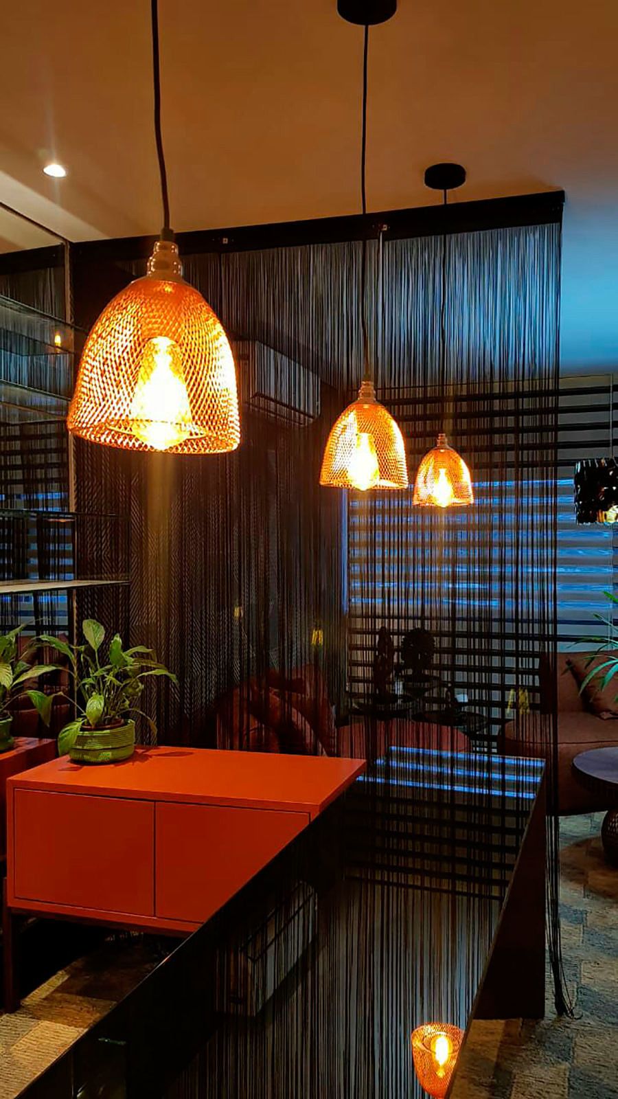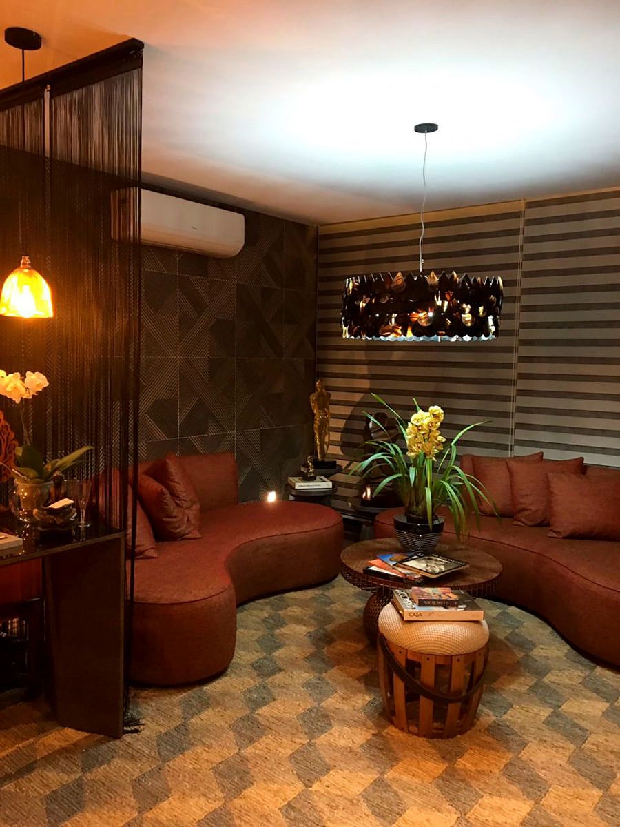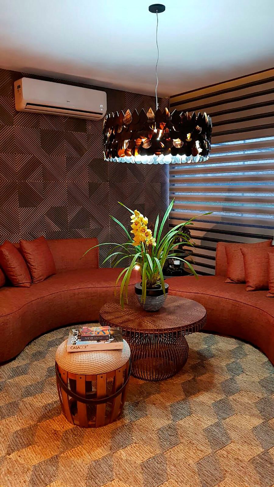 Os tons claros e terrosos criam uma atmosfera calma, que convida a permanecer no ambiente. Junto a Cortina Atena Amorim, que tem um feito translúcido e proporciona estilo próprio, dando harmonia ao espaço como divisórias em franjas leves.