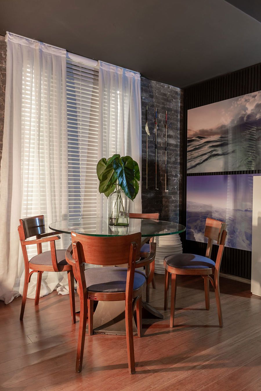 O ambiente assinado por Gustavo Paschoalim para a CASACOR São Paulo tem 92m², com uma cozinha gourmet integrada ao amplo living. Com a pegada dos lofts americanos, utiliza piso de demolição de bambu, iluminação em trilhos aparentes e tijolos ingleses nas paredes.