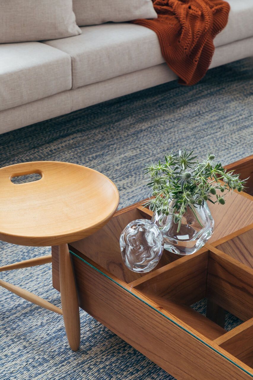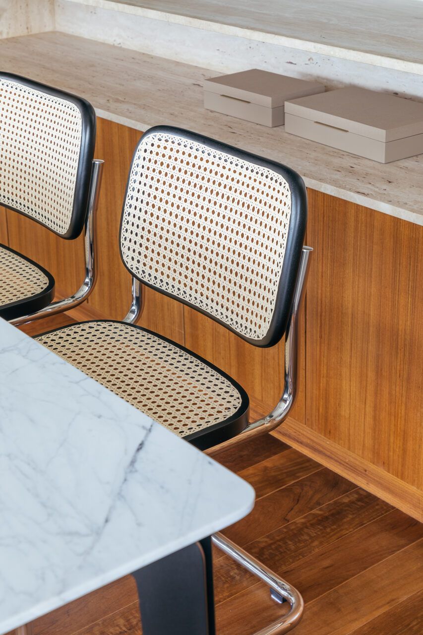 Madeira natural como protagonista e mobiliário escolhido à dedo