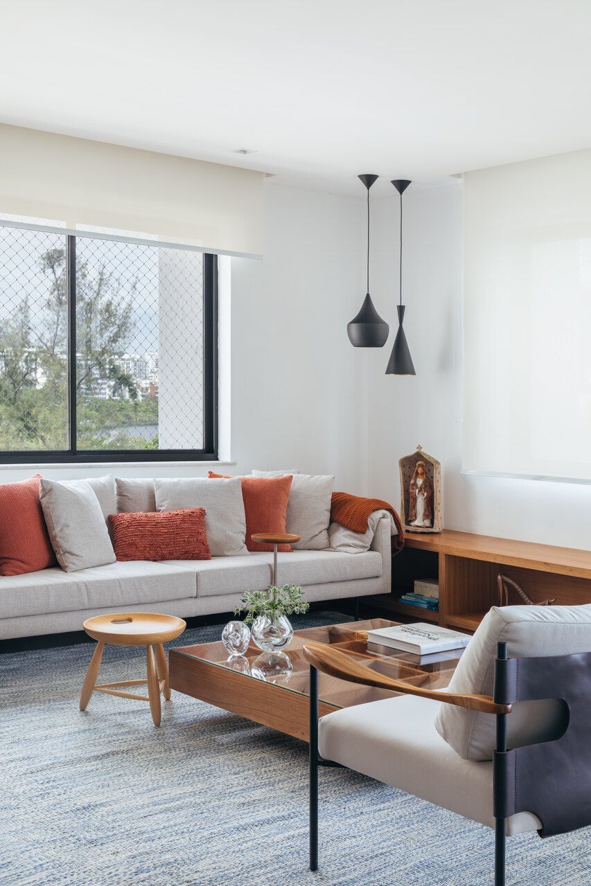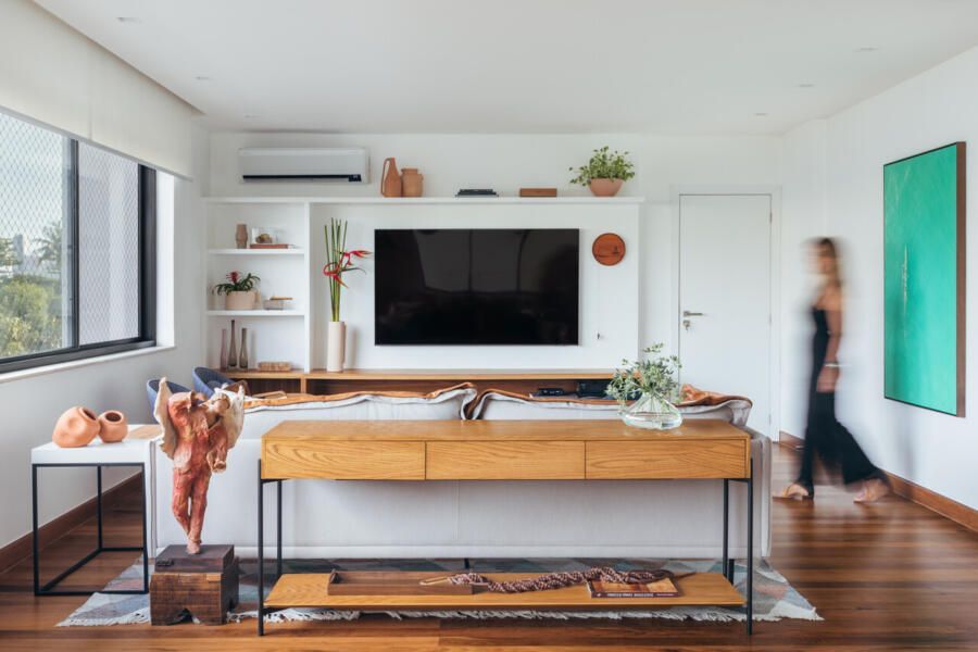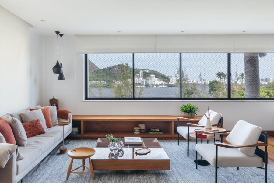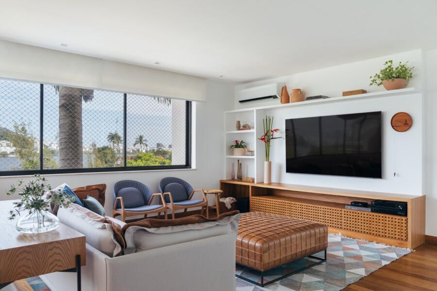 Um jovem casal, que vive com seus dois filhos pré-adolescentes, queria um apartamento amplo, confortável, onde pudesse receber amigos e familiares de fora da cidade e aproveitar a bela vista da Lagoa Rodrigo de Freitas. Para isso, a arquiteta Fernanda Medeiros, responsável pelo projeto de interiores, aproveitou a planta de 250m² para dar personalidade ao lar com muita madeira natural e mobiliário escolhido à dedo.