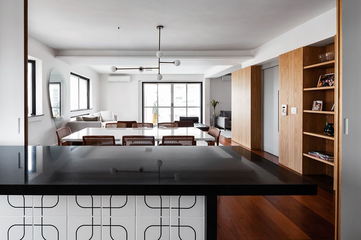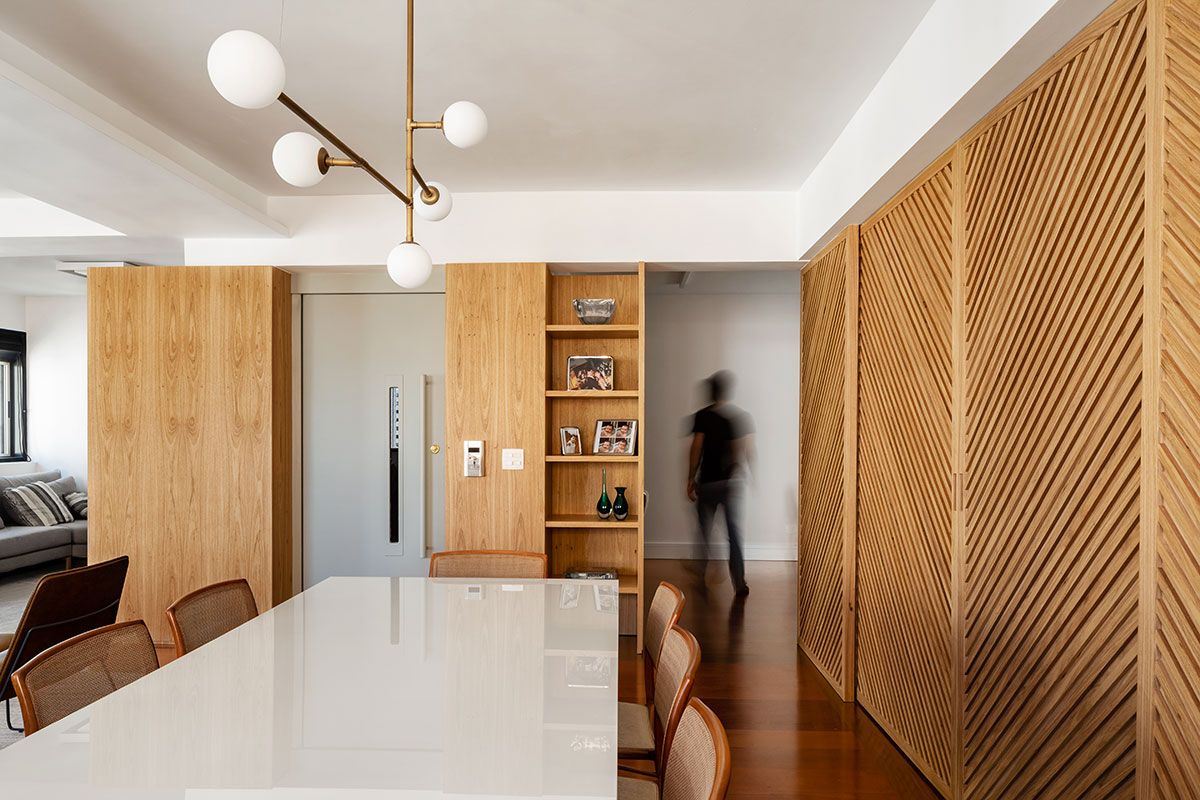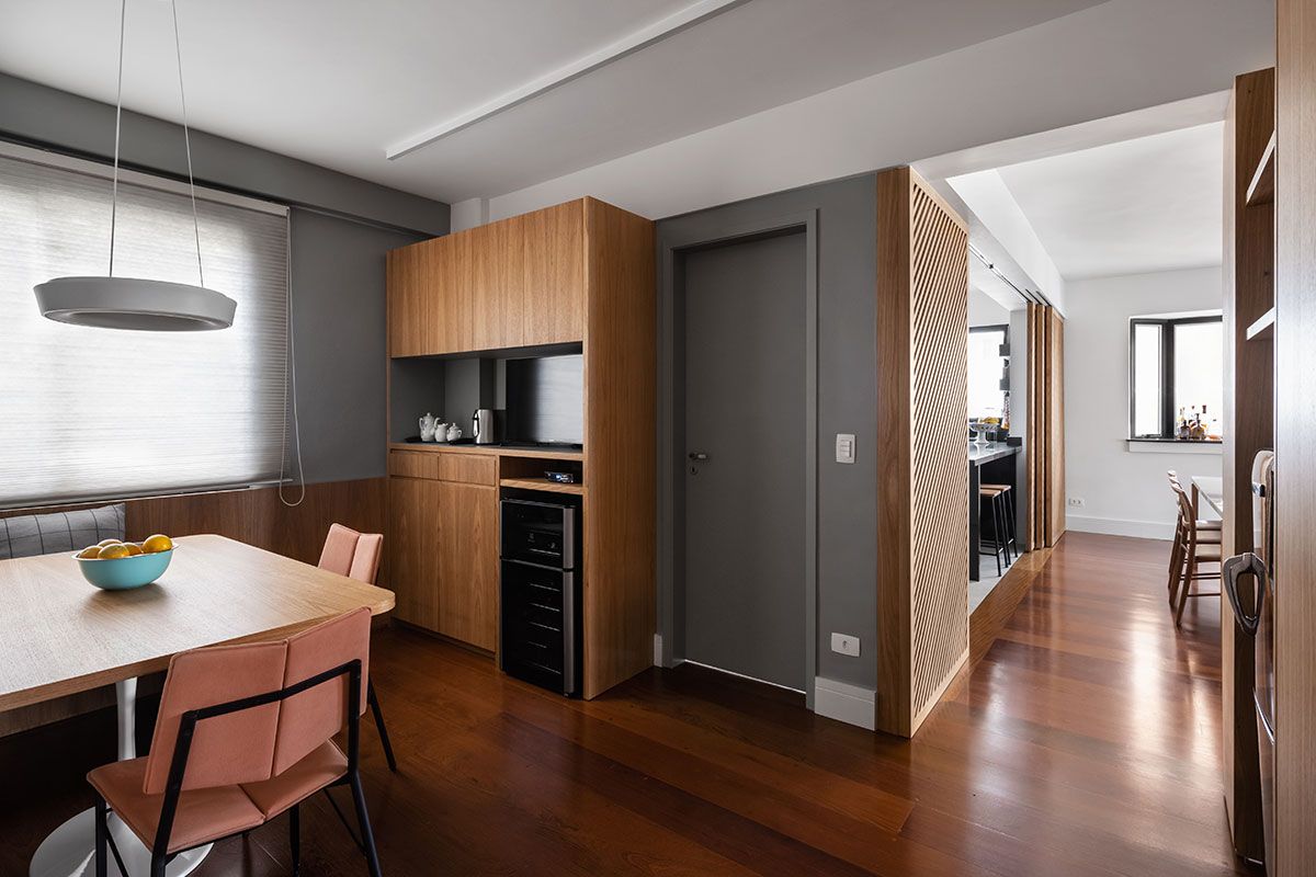 Mudar os percursos e os usos do espaço trouxe uma dinâmica melhor e mais fluida ao apartamento.