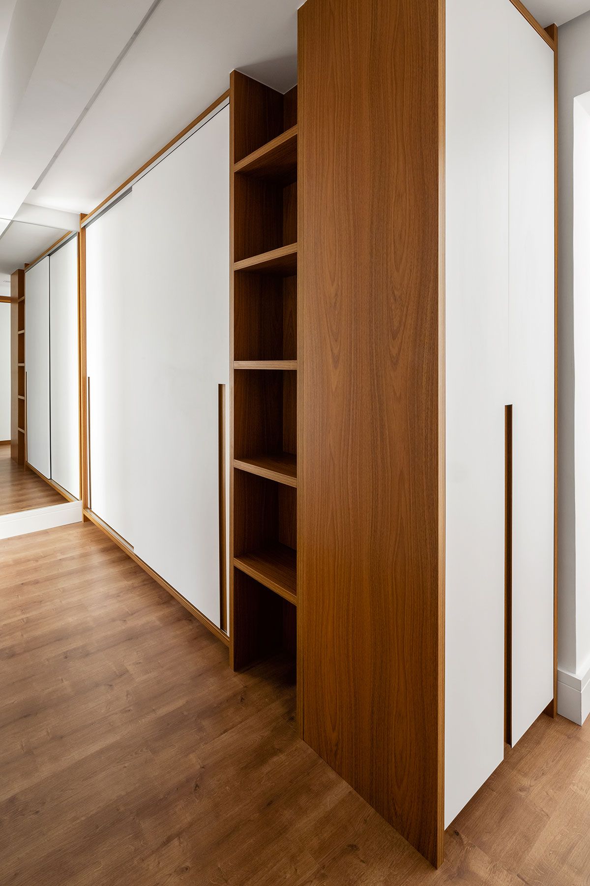 A cliente deixou o escritório RAS Arquitetura livre para projetar o apartamento de 170,10 m² explorando todo o potencial do imóvel. Ela queria transformar o apartamento de 3 suítes em duas suítes + closet. Além disso, queria integrar mais os espaços sociais de convívio.