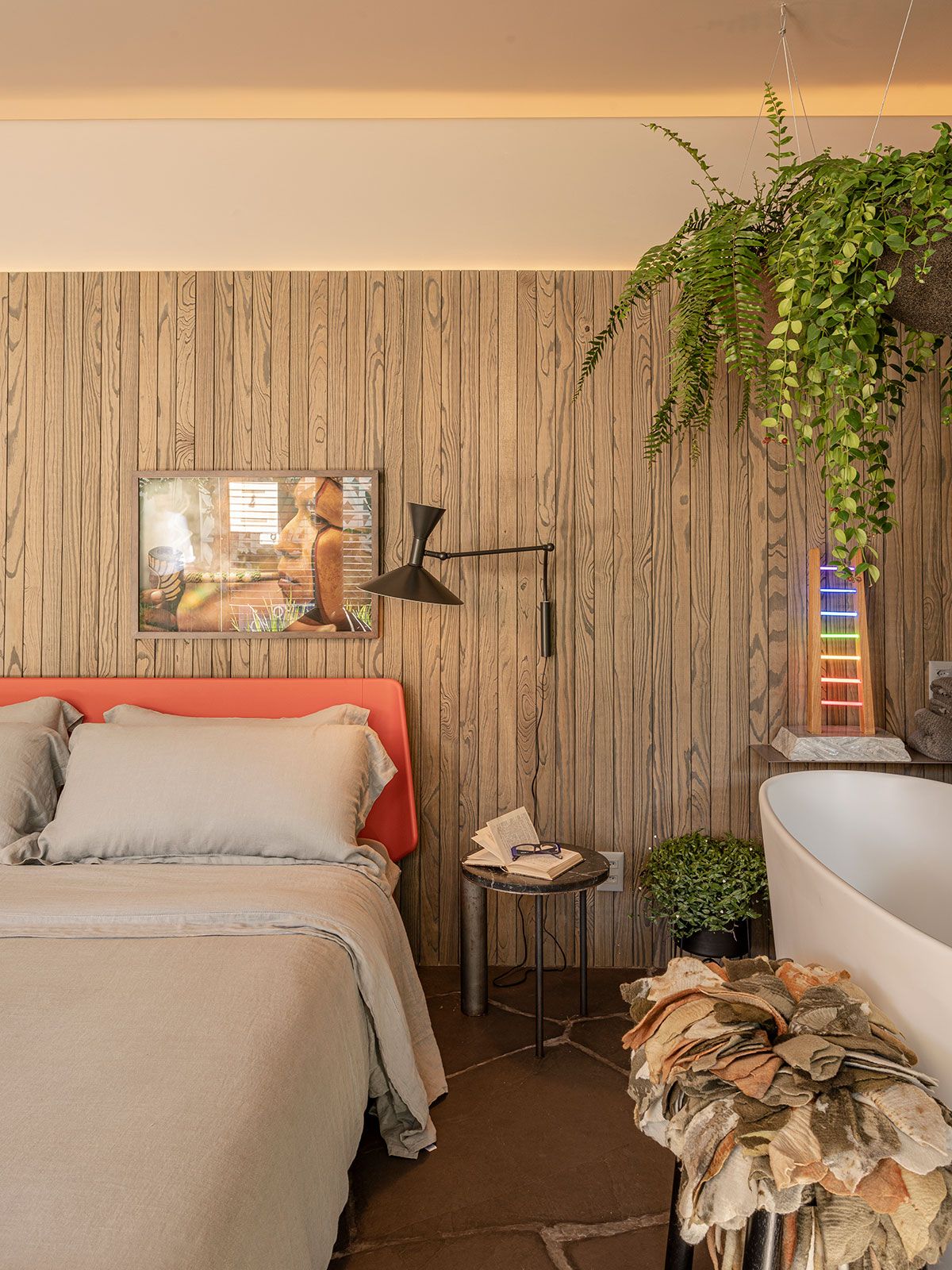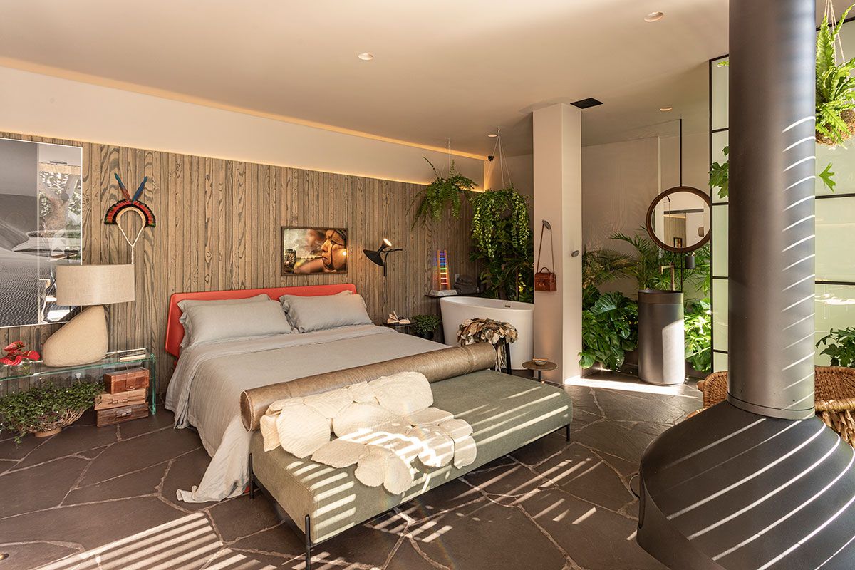 O ambiente assinado pelo Marcio Michaluá para a CasaCor SP 2019 é a Cabana Urbana. O espaço de 38m² é um refúgio urbano com referências de arte, design, arquitetura, moda e fotografia. O paisagismo, chancelado por Renata Tilli abençoa a cabana em uma sintonia de bem estar, relaxamento e conexão.
