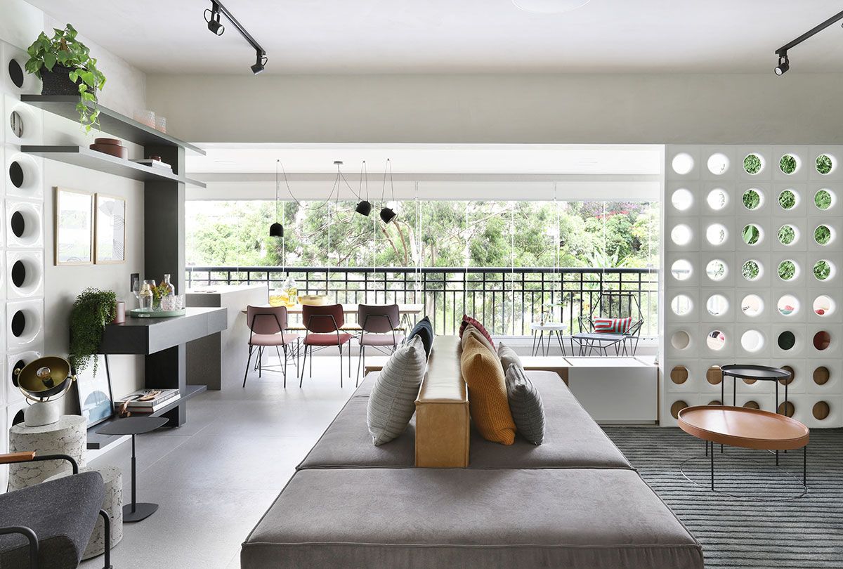 Foi aí que surgiu a solução das divisórias em cobogó, que separaram sem bloquear totalmente a visão e a luz e acabam como paredes esculturais de tão agradáveis aos olhos.