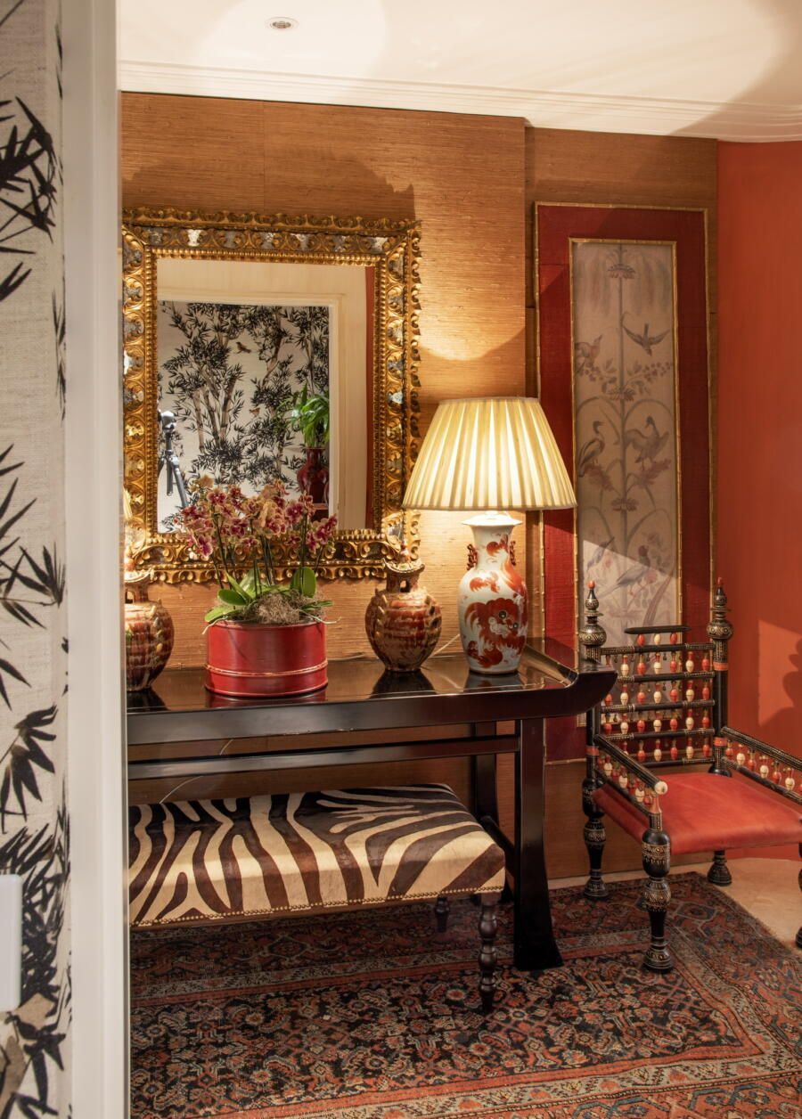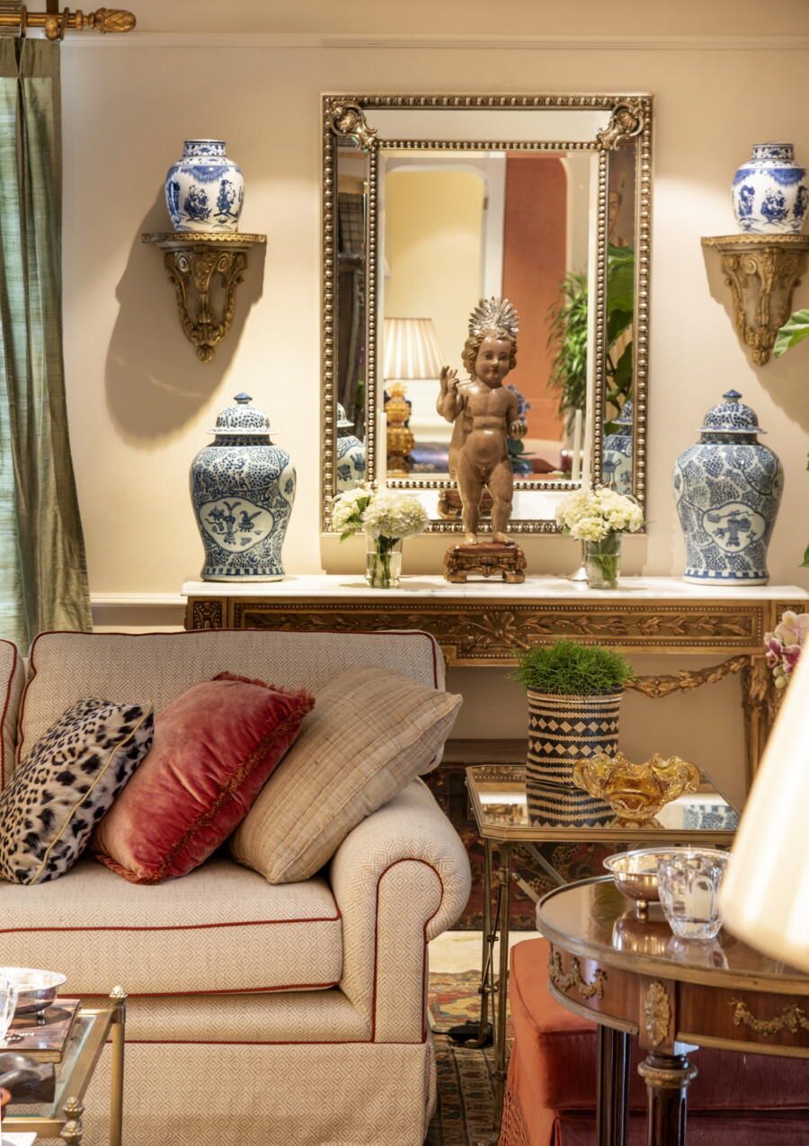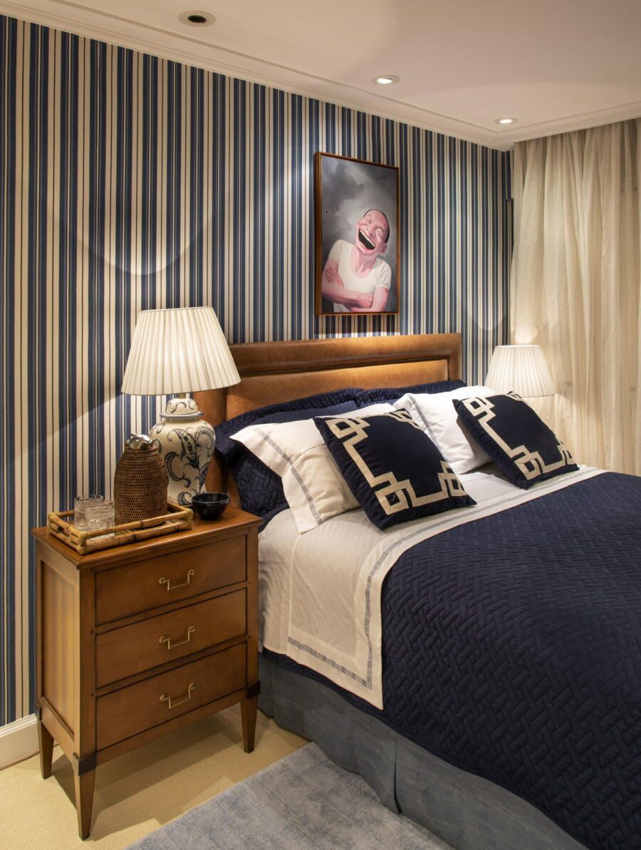“O clássico exige detalhes e acabamento. Gosto da mistura de estampas, mas desde que o resultado seja harmonioso. Ouso bastante para não ter um resultado óbvio, porque o óbvio todo mundo faz! Sou perfeccionista e gosto de tudo feito com amor, então acho que o resultado é naturalmente um maximalismo bem marcado ao longo dos cômodos. O apartamento todo, mas principalmente o living, ficou clássico, leve e a cara das donas da casa.”