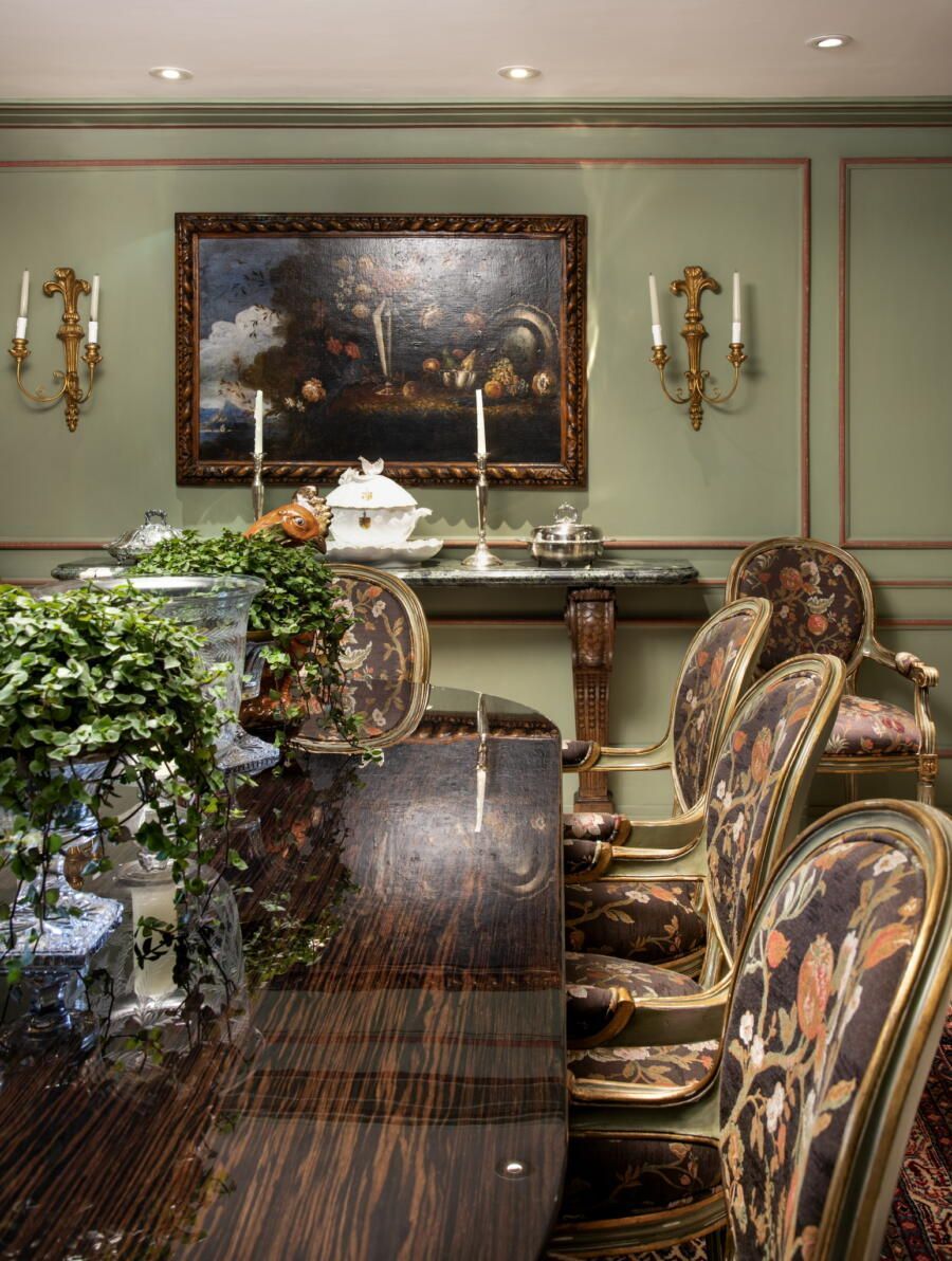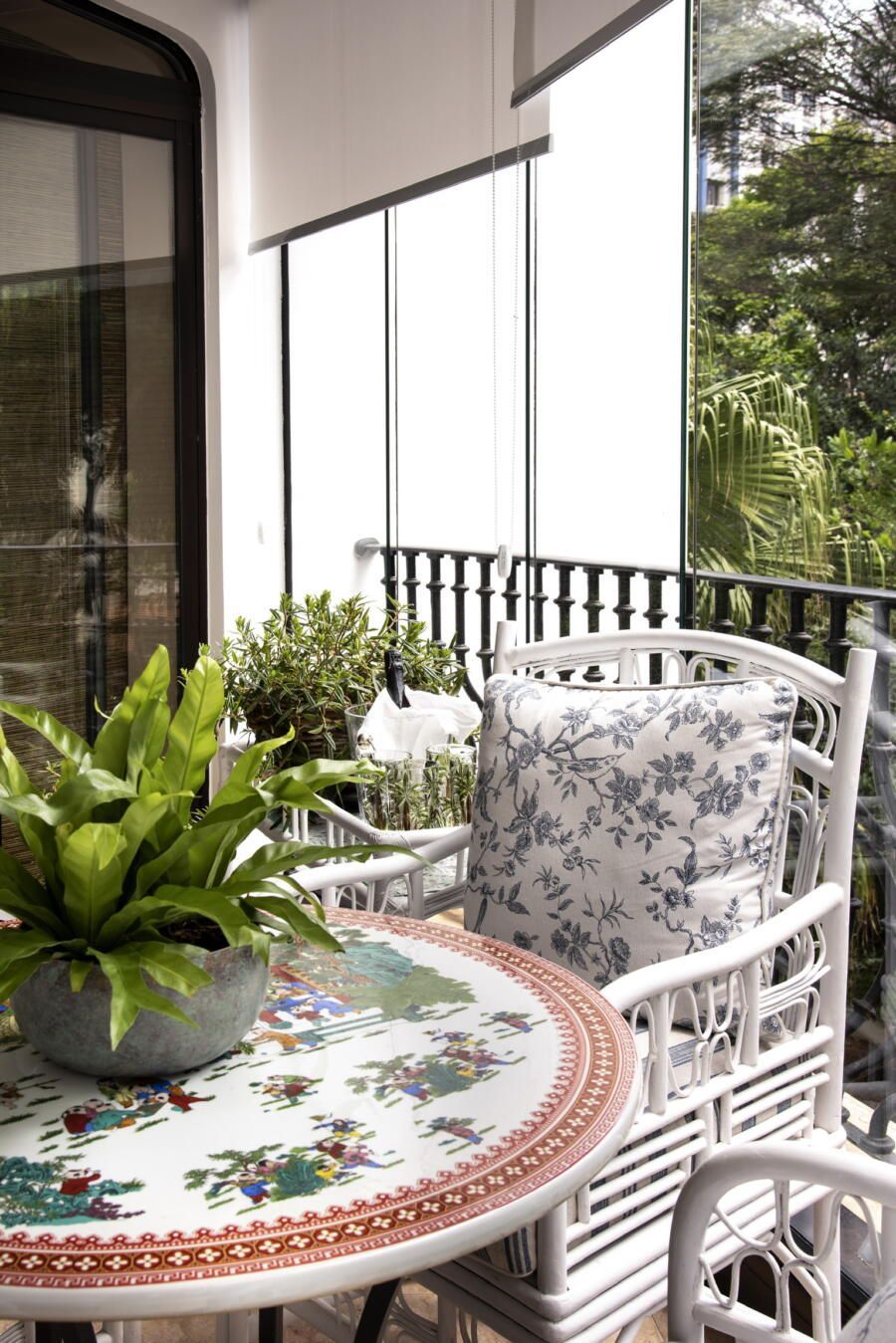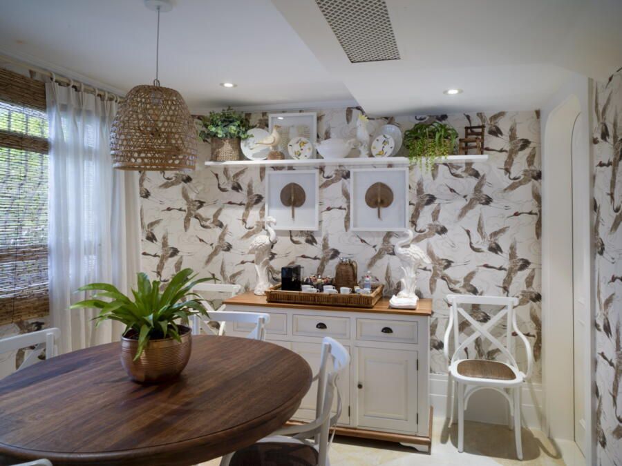“O clássico exige detalhes e acabamento. Gosto da mistura de estampas, mas desde que o resultado seja harmonioso. Ouso bastante para não ter um resultado óbvio, porque o óbvio todo mundo faz! Sou perfeccionista e gosto de tudo feito com amor, então acho que o resultado é naturalmente um maximalismo bem marcado ao longo dos cômodos. O apartamento todo, mas principalmente o living, ficou clássico, leve e a cara das donas da casa.”
