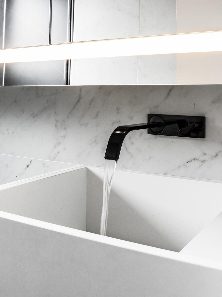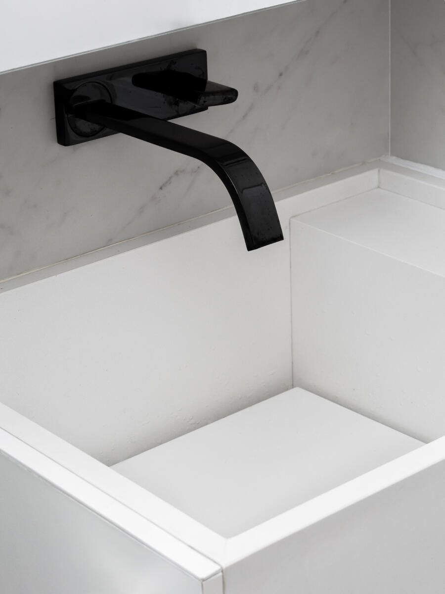 “Procuramos trabalhar com poucas cores no projeto, paleta clara e neutra, revestimentos simples e sutis para não ocorrer interferência de qualquer objeto de cor que venha a ser inserido no ambiente posteriormente.”