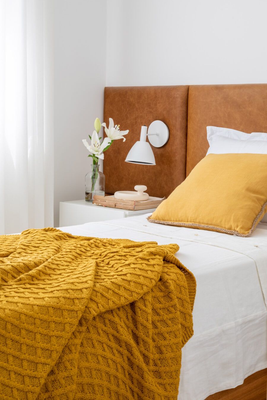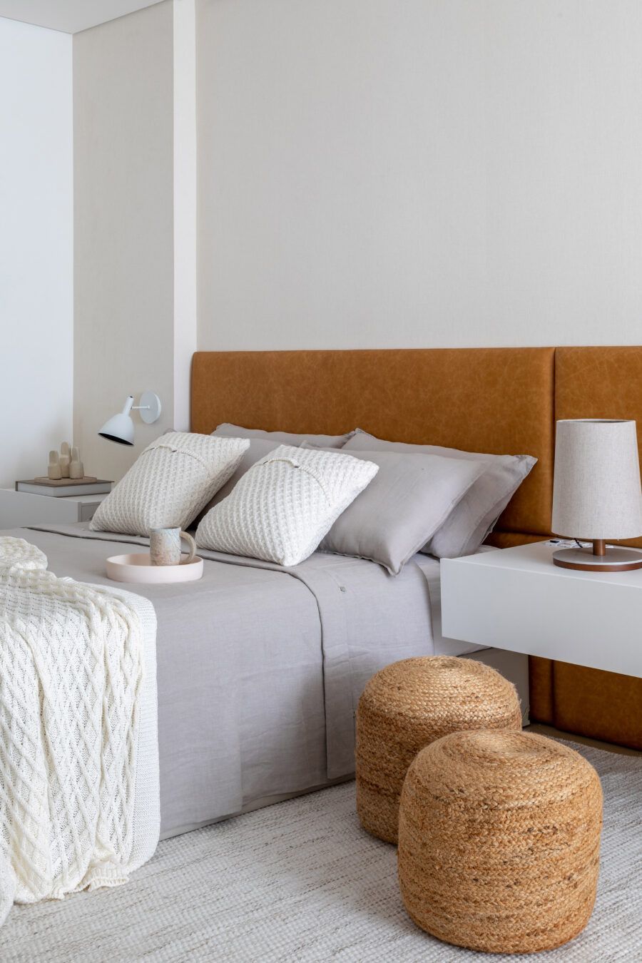 “Como a cliente passou a trabalhar em casa na pandemia e permanece até hoje, ela queria integrar um dos quartos com a suíte para criar um espaço de trabalho confortável, com bastante luz natural. Outro pedido foi um quarto de hóspedes aconchegante para acomodar os dois hóspedes que ela recebe com frequência.”