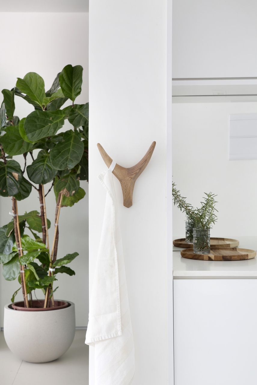 A paleta de cores é majoritariamente clara, com muito branco e elementos pontuais em madeira natural e tecidos em linho. Já na decoração, algumas peças de design e obras de arte compõem a decoração, herdadas da família, como um quadro do Di Cavalcanti e a poltrona Wassily de Marcel Breuer.
