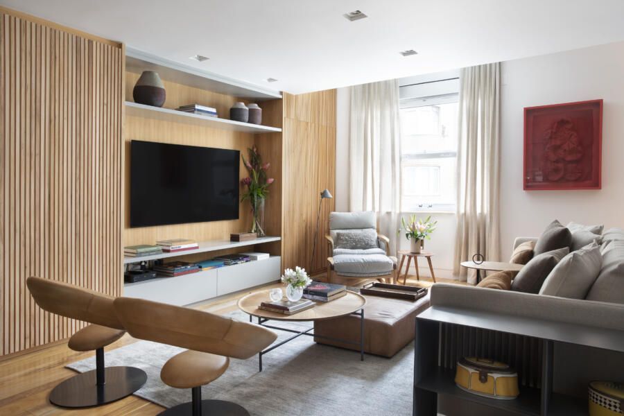 Um apartamento com duas adegas na sala e muito mobiliário brasileiro contemporâneo. Este foi o pedido dos clientes ao escritório Magarão + Lindenberg Arquitetura, que assina o projeto de 225m² no Leblon, Rio de Janeiro.