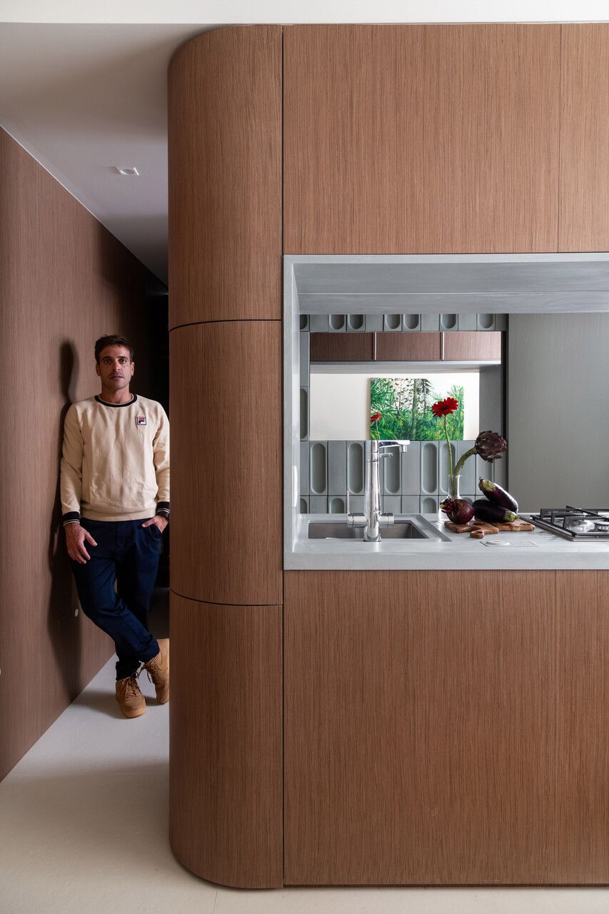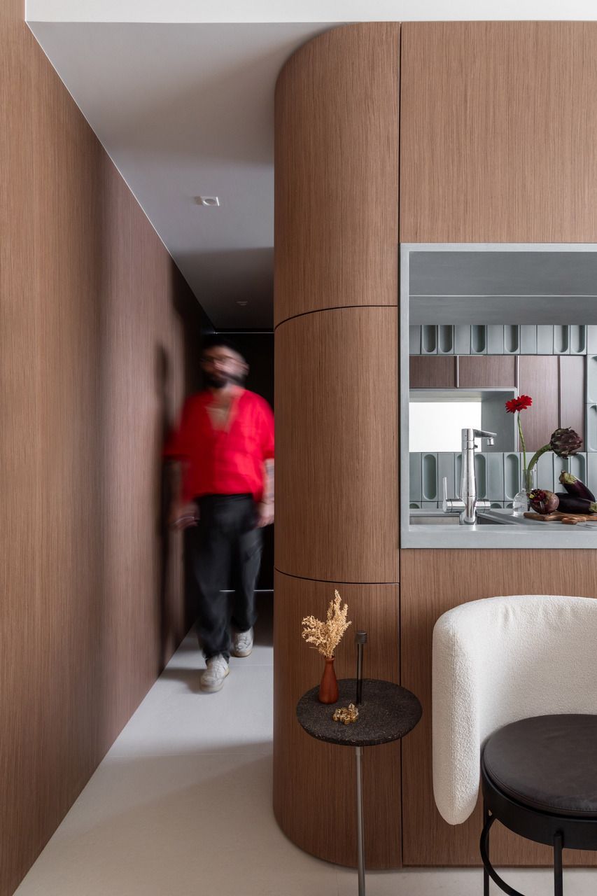 Assinado pelo arquiteto Richard de Mattos, à frente do escritório Casa Cururu, este apartamento de 40m² em Ipanema, no Rio de Janeiro, foi pensado sob medida para Rubens e Jane, um casal na faixa dos 50 anos. O projeto nasce da relação de confiança construída ao longo de dois trabalhos anteriores realizados no mesmo edifício e se consolida agora em um imóvel maior, mais iluminado e completamente transformado para refletir o estilo de vida dos moradores em um modernismo em escala reduzida.