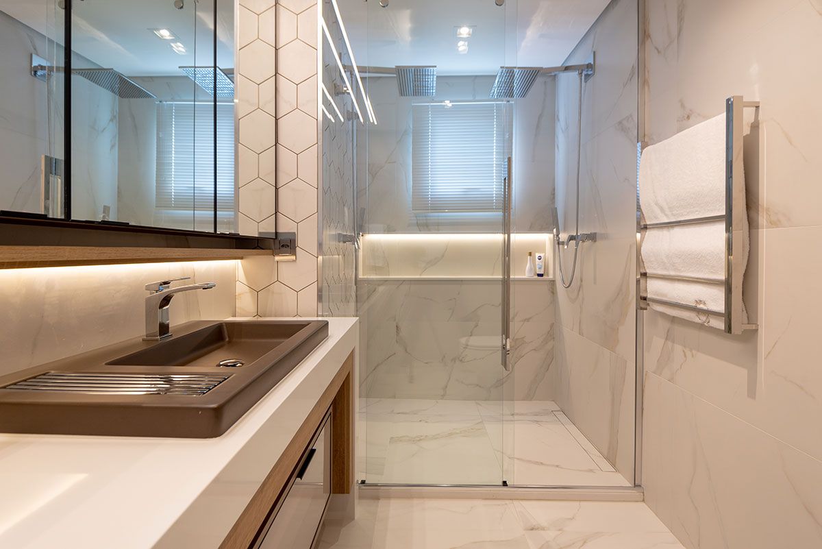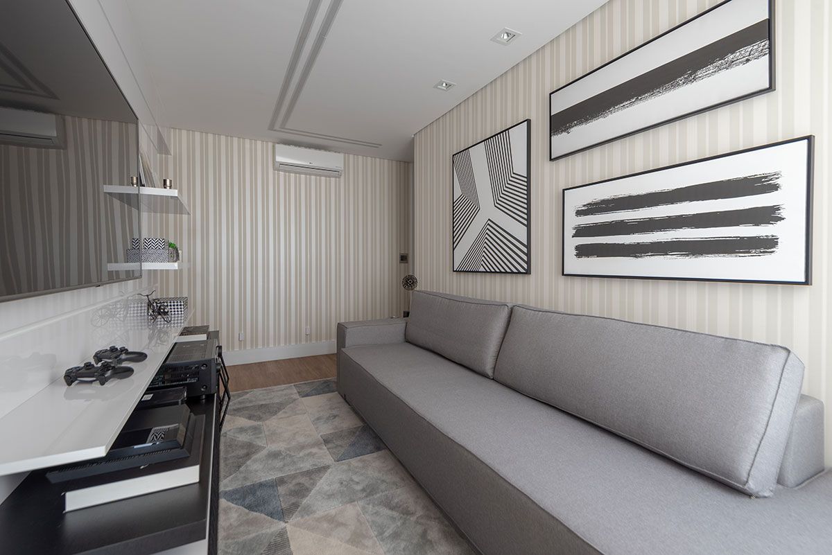 O principal desafio da arquiteta foi integrar todas as áreas sociais de uma forma harmoniosa e segmentada. As portas que separavam as varandas da sala foram removidas para ampliar o ambiente, que se tornou mais aconchegante. As modificações arquitetônicas foram feitas para viabilizar as circulações, aumentar o espaço útil, facilitar o dia a dia do cliente e valorizar o imóvel.