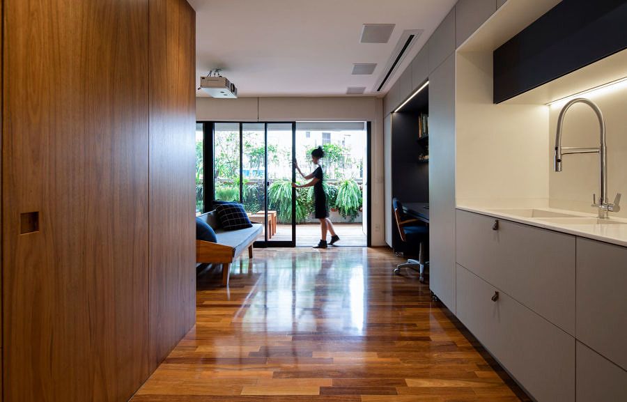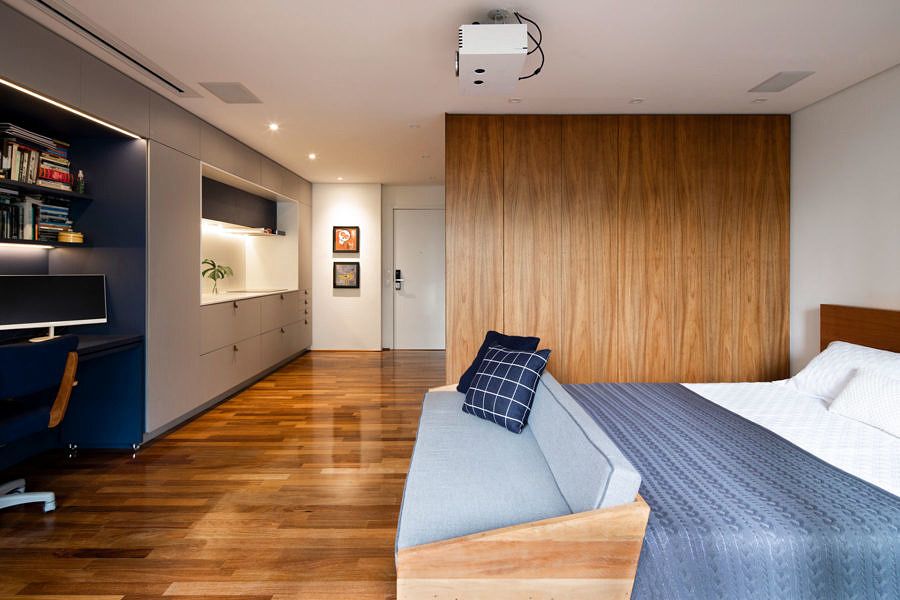 O escritório Sala 5 Arquitetura assina o projeto desse apartamento de 30m², em São Paulo. O cliente gostaria de ter muito espaço, mesmo em uma metragem reduzida.