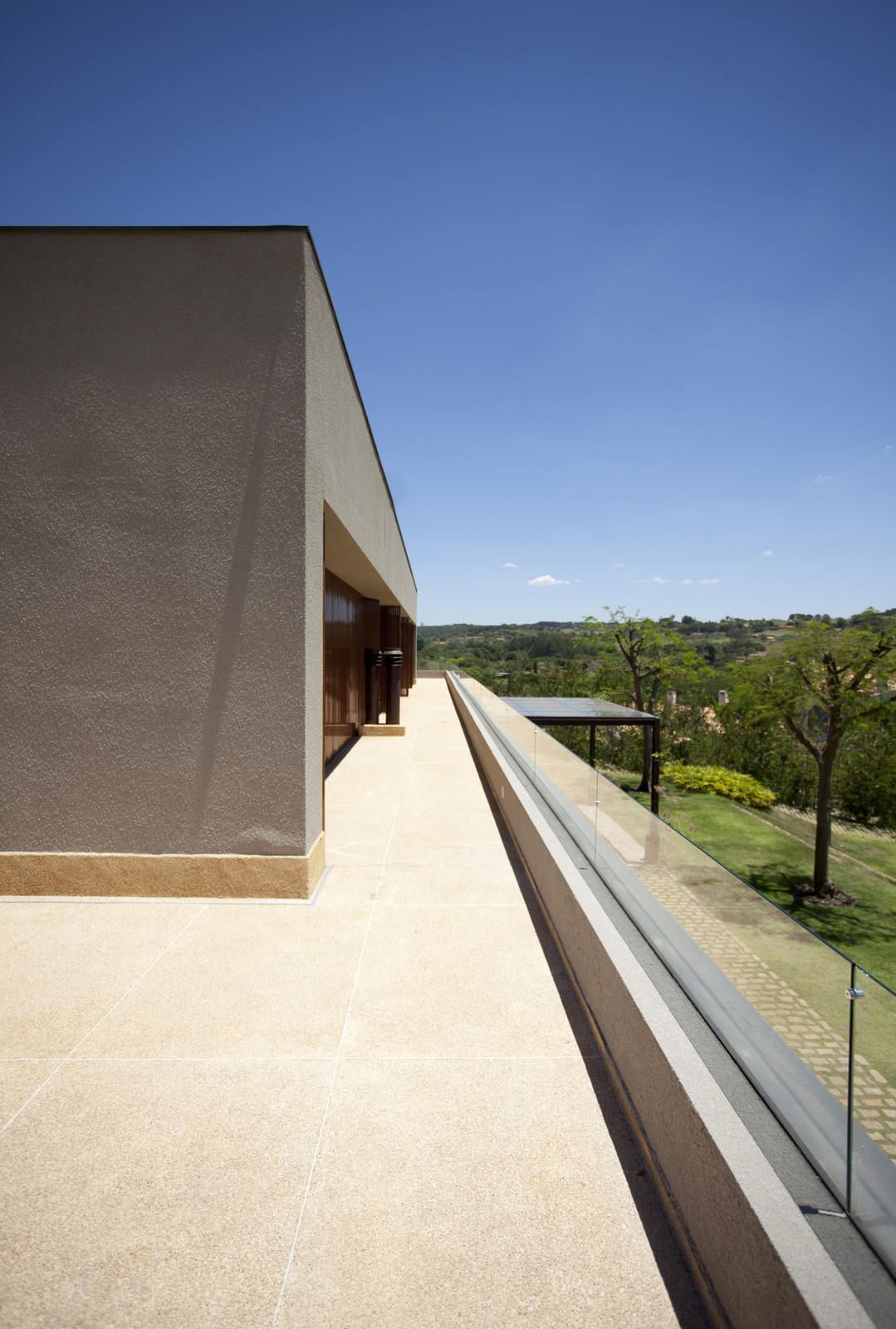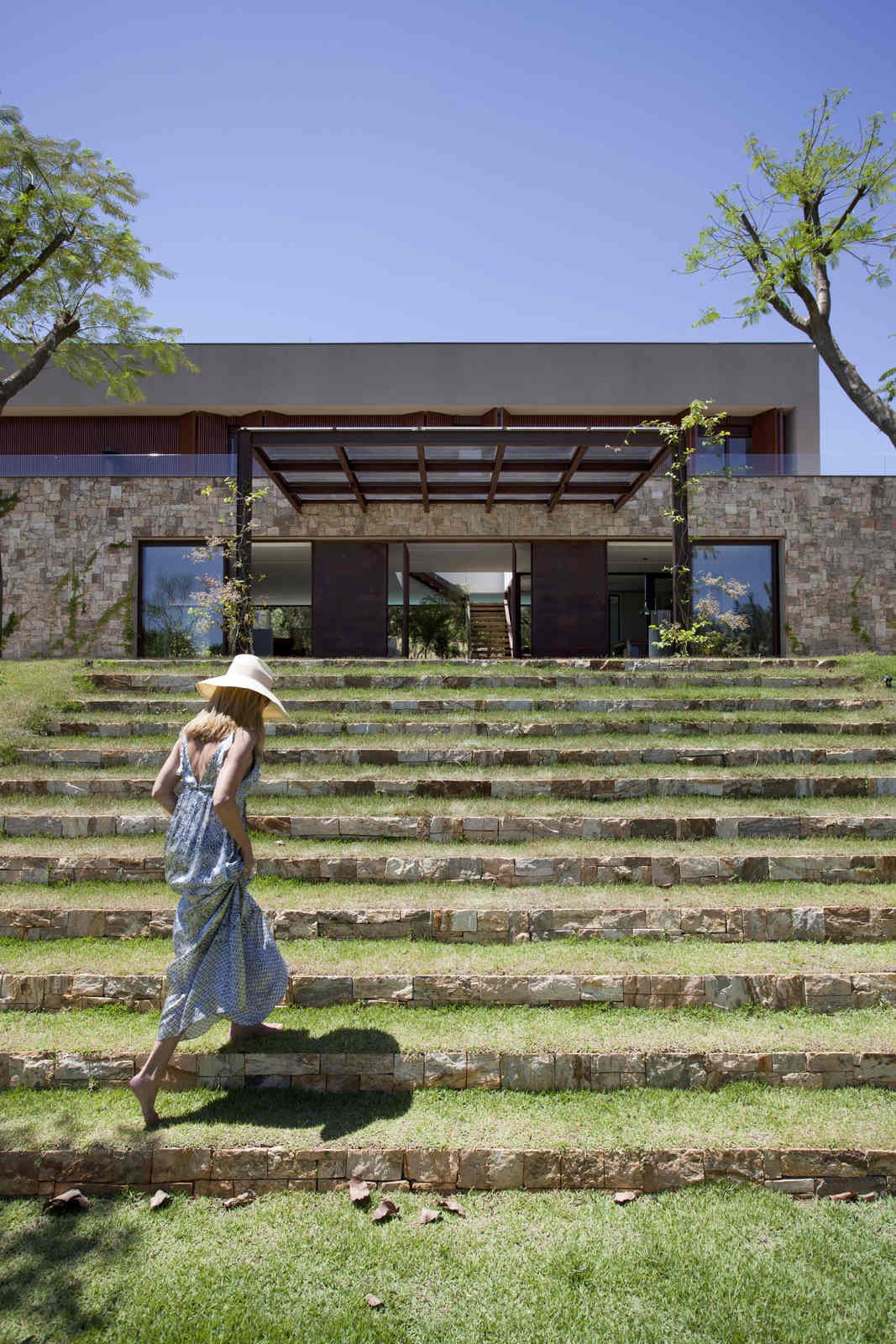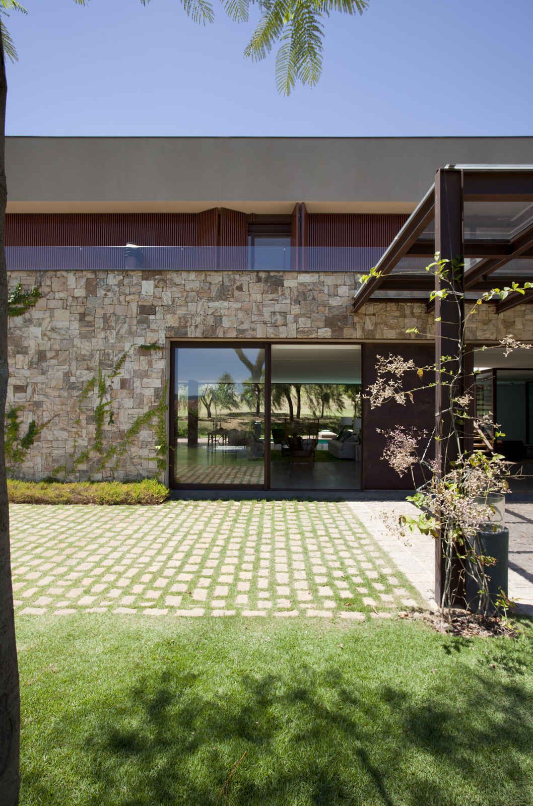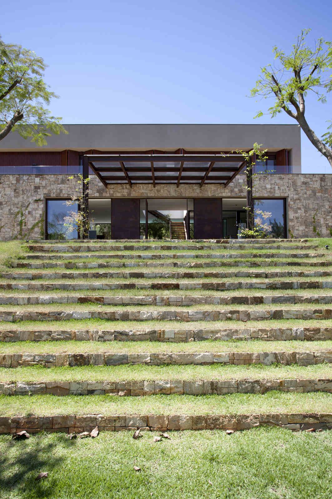 “A casa ficou afastada das construções vizinhas e não há bloqueios laterais. Sendo assim, a vista privilegiada foi amplamente explorada nos vãos abertos dos dois pavimentos; o inferior, com as áreas sociais, e o superior, com as íntimas. O desenho é o de uma casa-varanda, com aberturas de mais de 20 metros de comprimento no térreo, pelo qual se enxerga toda a propriedade.”