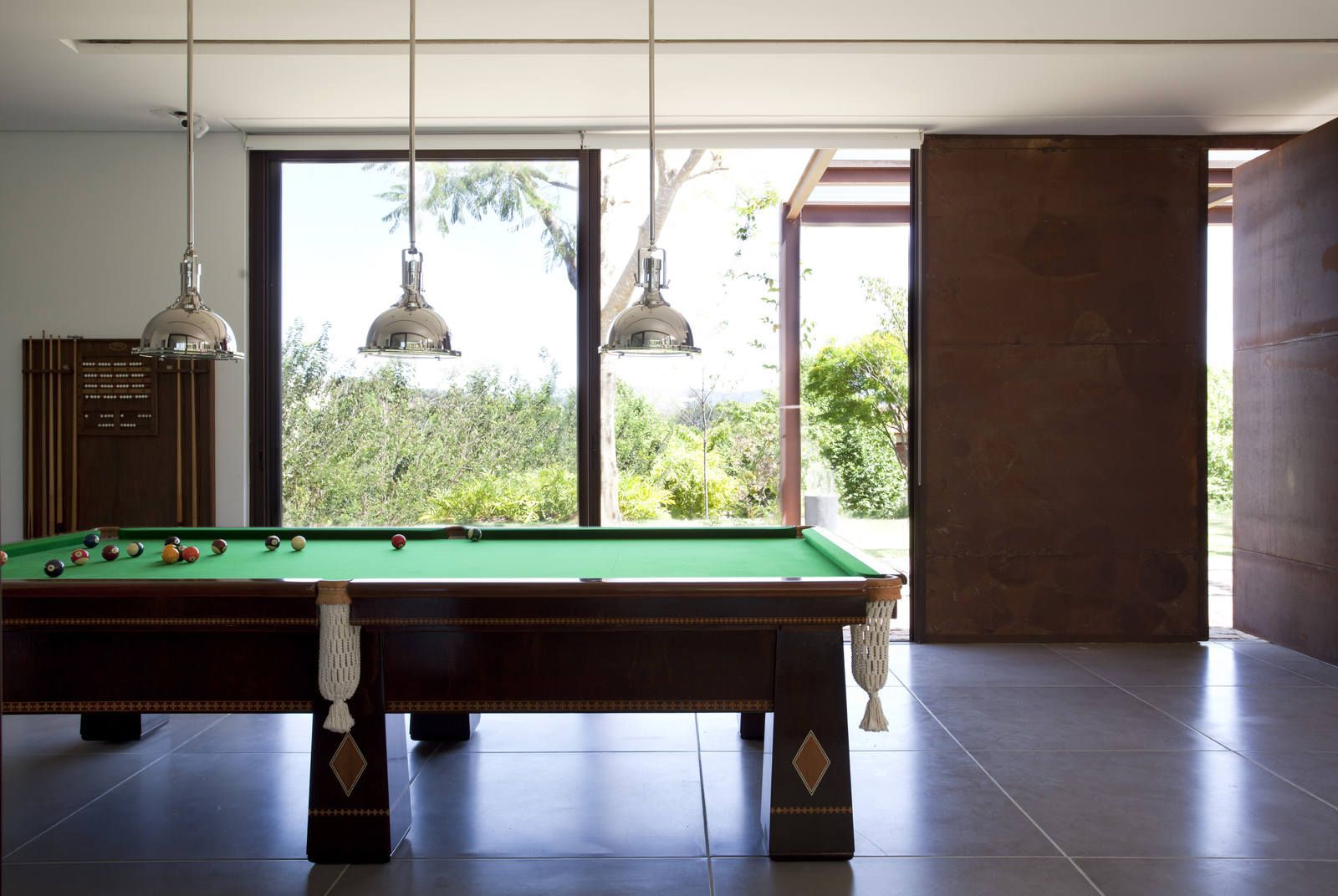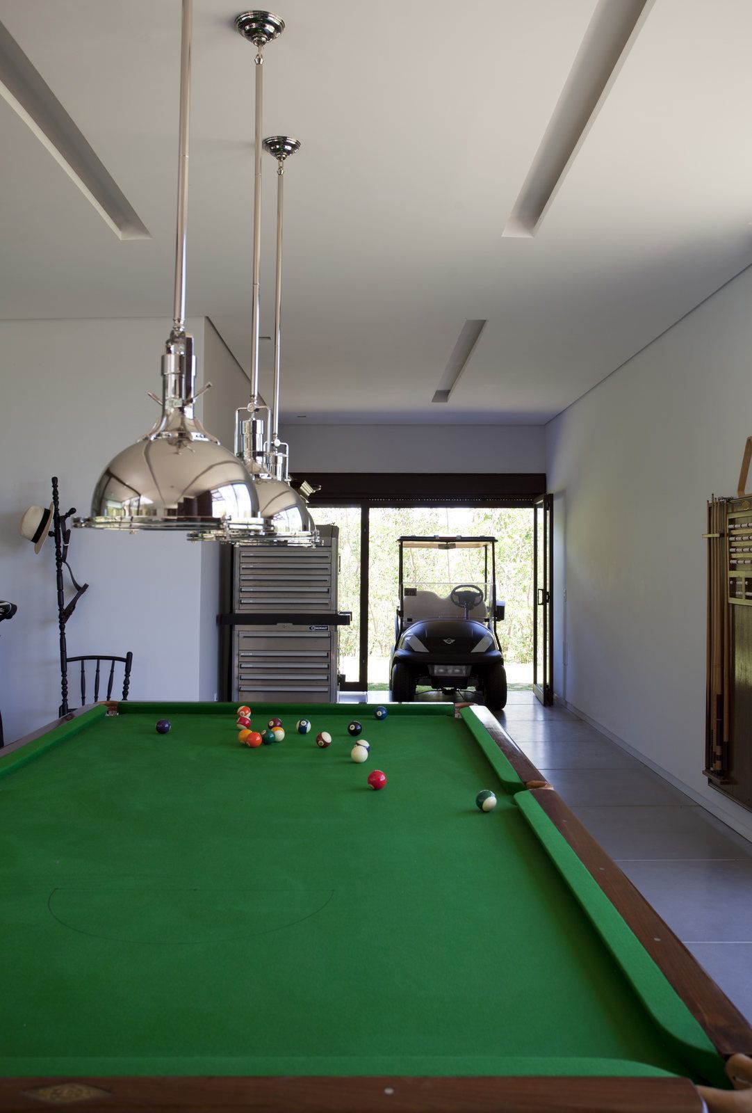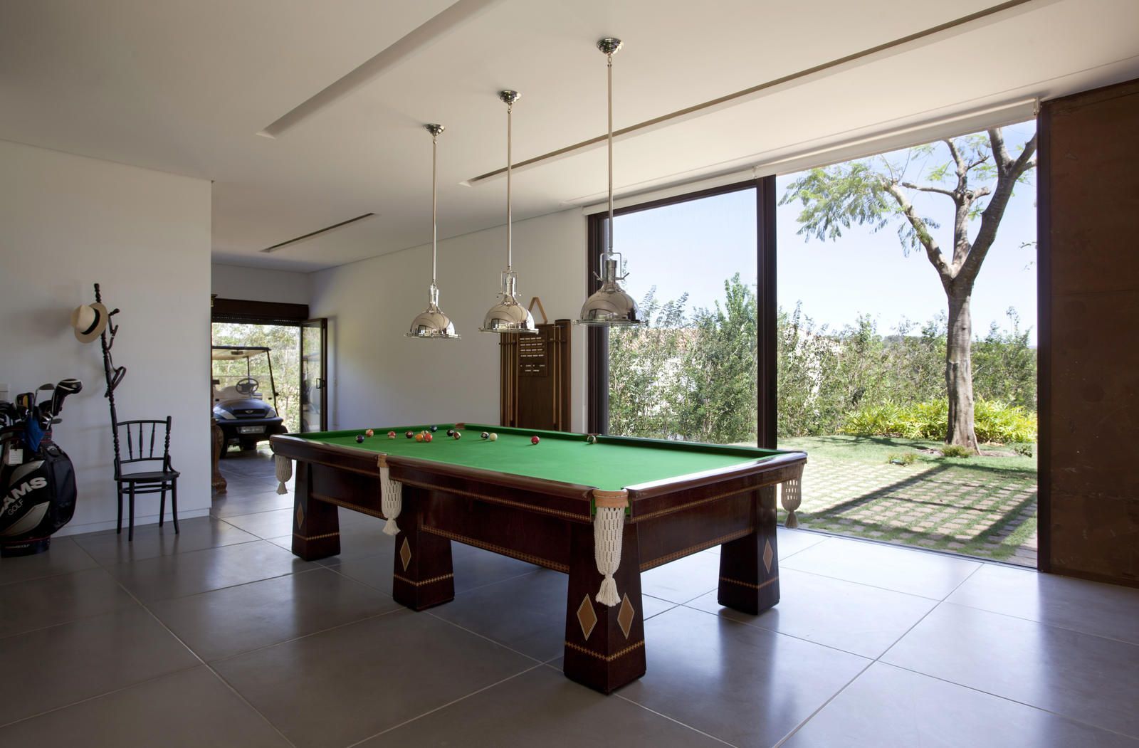 “Mesmo com mais de três mil m², o lote não era fácil de resolver. Além da insolação um pouco prejudicada, ele começava estreito e se abria para os fundos numa subida. Sendo assim, resolvemos posicionar a residência atrás, nessa parte mais alta, o que dispensou grandes movimentações de terra e garantiu uma bela vista.”