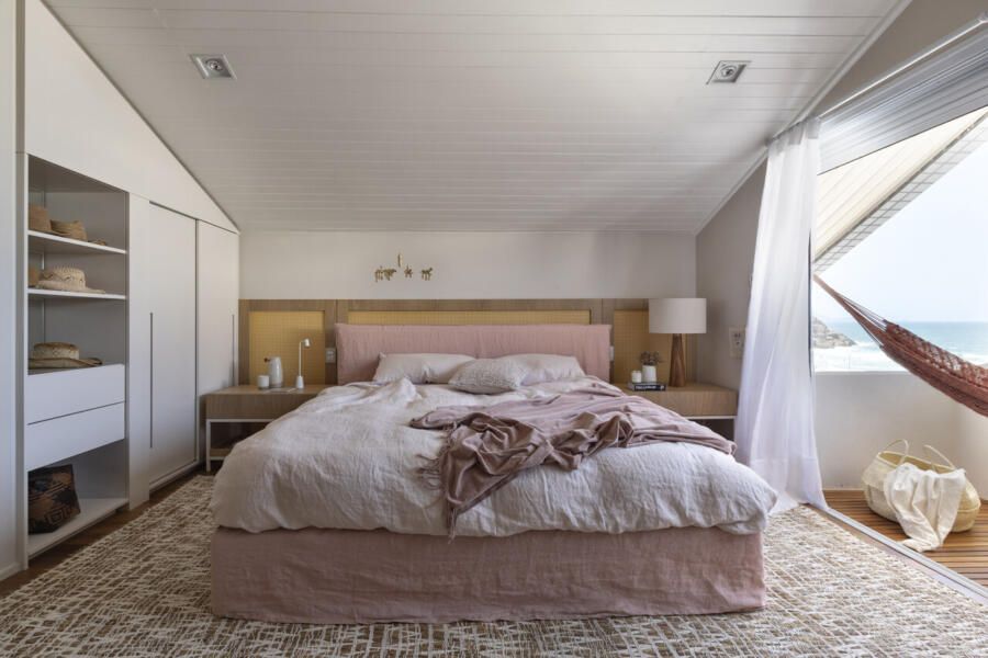 Suíte master da modelo Alessandra Ambrósio na Praia Brava, Florianópolis. Foto: Ruy Teixeira / Divulgação