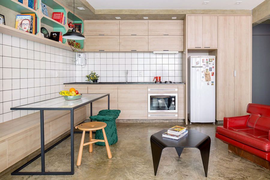 O jovem quadrinista e ilustrador, Caio Gomez, adquiriu um studio de apenas 40m² em um edifício localizado na cidade modernista de Brasília. O ambiente abriga um programa simples: cozinha, sala de estar, sala de jantar, banheiro, dormitório e área de trabalho.