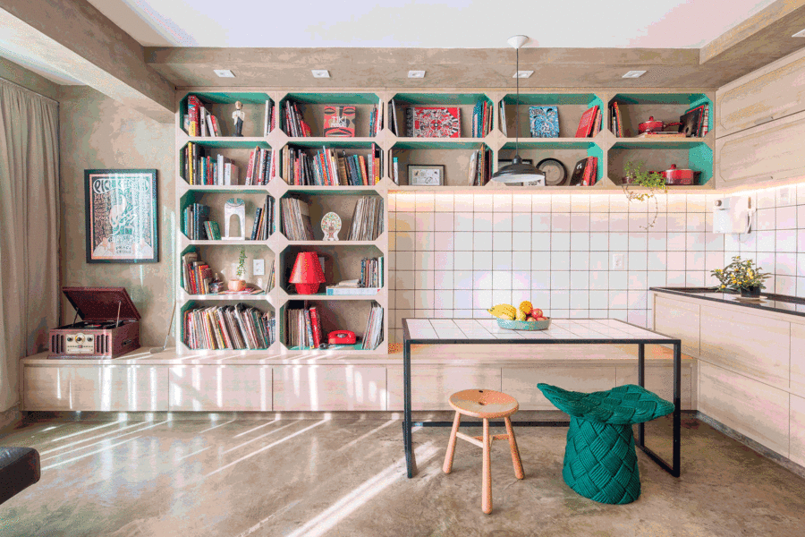 Além de reunir todas as funções dentro de um só espaço, o cliente pediu ao escritório Clarice Semerene Arquitetura um lar aconchegante, com elementos afetivos, que expressassem sua personalidade e estimulam o encontro e a criatividade.
