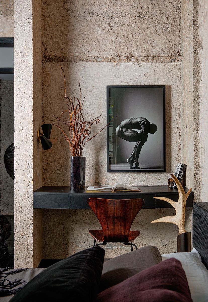 Este apê da década de 50 ganhou nova roupagem e um décor todo em tons escuros.