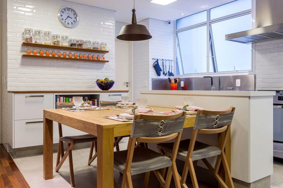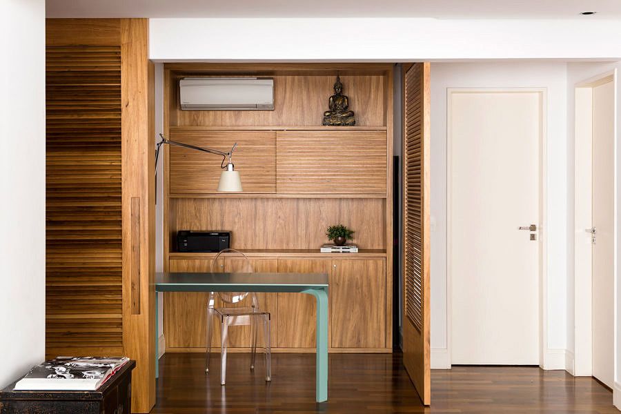 Os clientes do escritório Julyana Bortolotto Arquitetura pediram que o apartamento, primeiro do casal, tivesse um pouco o estilo da casa dos pais. Fizeram um pedido especial, que a decoração fosse mais moderna, sem ser fria, e mantendo alguns dos móveis que já tinham.