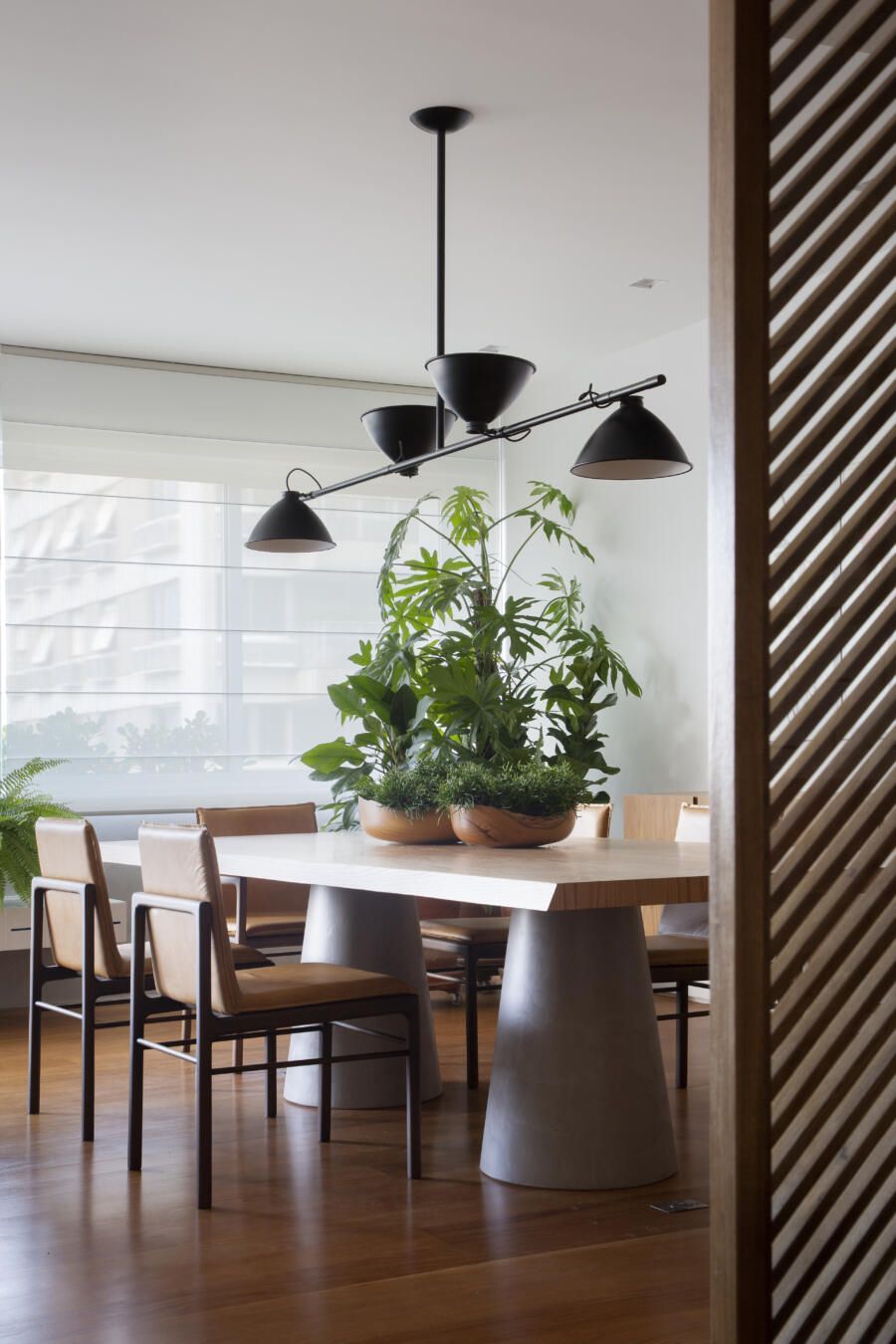 E o espaço da sala de jantar ganhou texturas previamente pensadas.