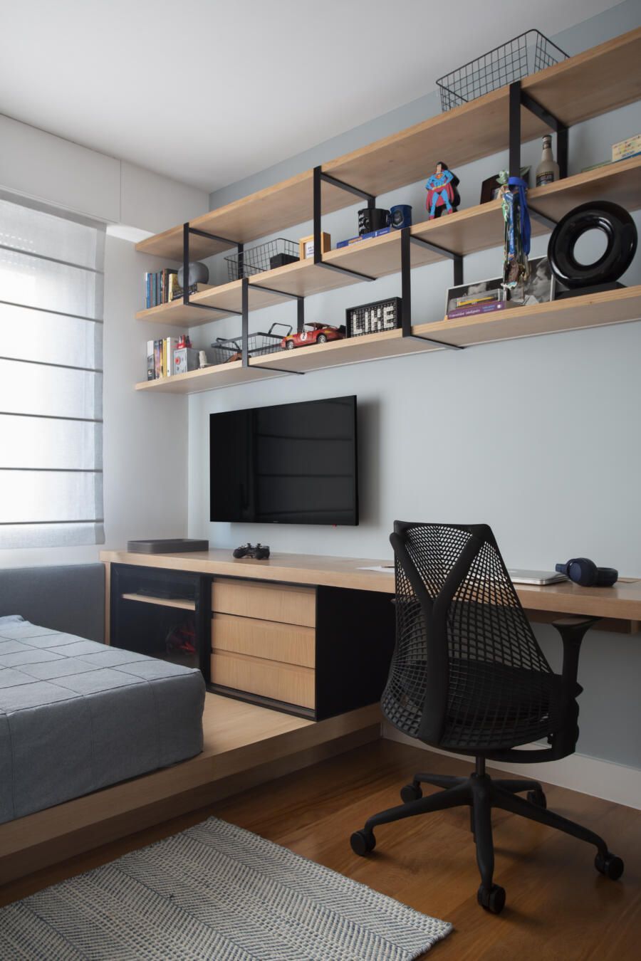 Vale ressaltar também o espaço pensado para a sala de televisão.