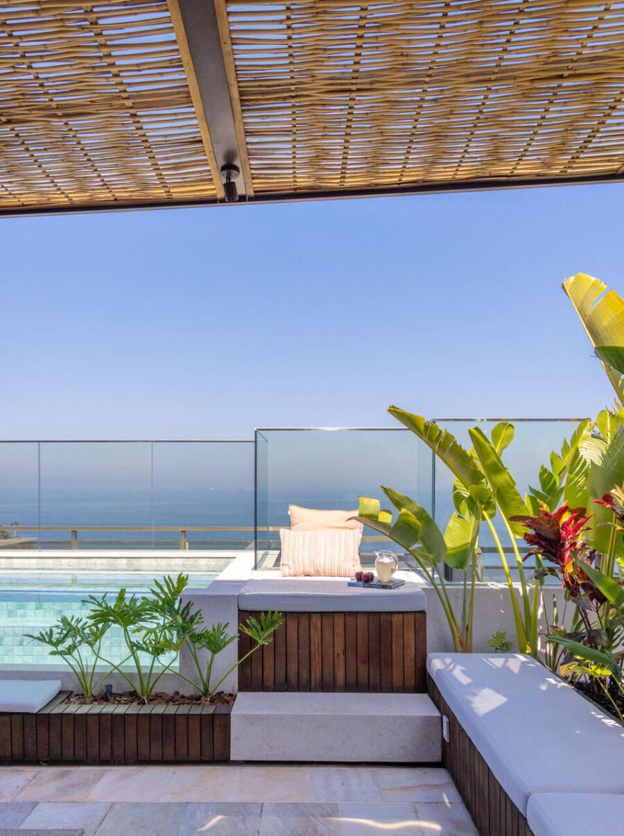 “No geral, as clientes queriam um paisagismo que trouxesse cor e variedade de texturas, com tons vibrantes e alegres. Um dos pontos principais era garantir que nada interferisse na vista para o mar, mas que todo o restante da área recebesse uma composição paisagística cuidadosa — como uma espécie de ‘vestimenta’ natural que valorizasse os espaços sem competir com a paisagem.”