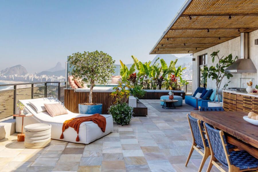 Em parceria com a dupla Ana Beatriz Rondon e João Vitor Coutinho, da RJ Arquitetura, e Amanda Haydon, a cobertura do apartamento de mãe e filha ganhou nova vida com a cor, textura e aconchego do verde e tonalidades vibrantes do paisagismo.