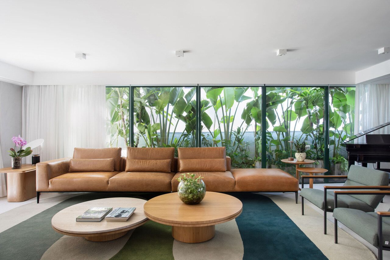 Entre as espécies de plantas usadas no projeto, Maira destaca os temperos na área da horta e ao longo do jardim, a palmeira Laca no jardim da sala interna e externa, bastante quantidade de filodendro em todos os cômodos para criar volume e textura, forração pendente variada, além de muita vegetação de mata tropical, com destaque para helicônias, alpinia, maranta charuto e dracena arbórea.