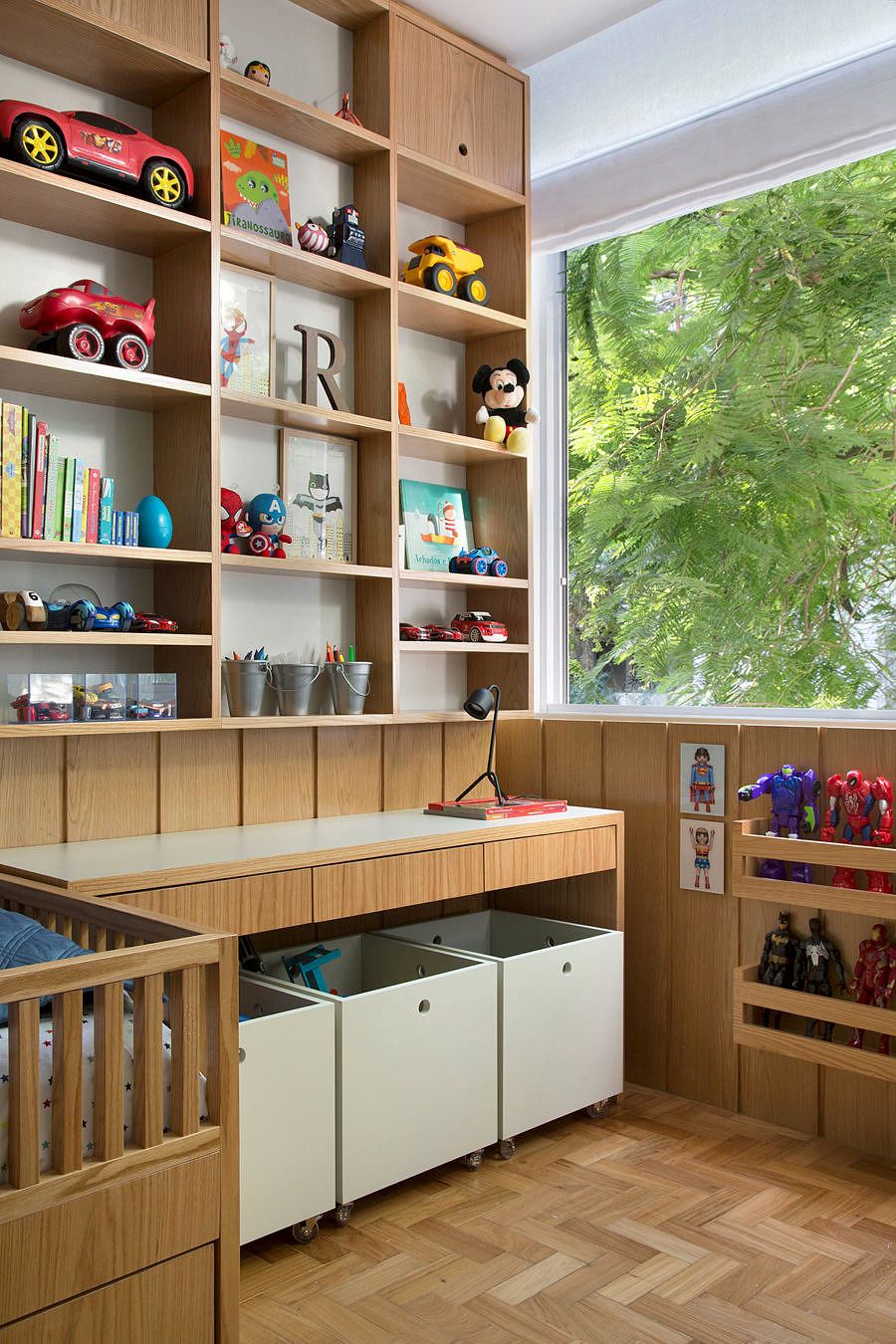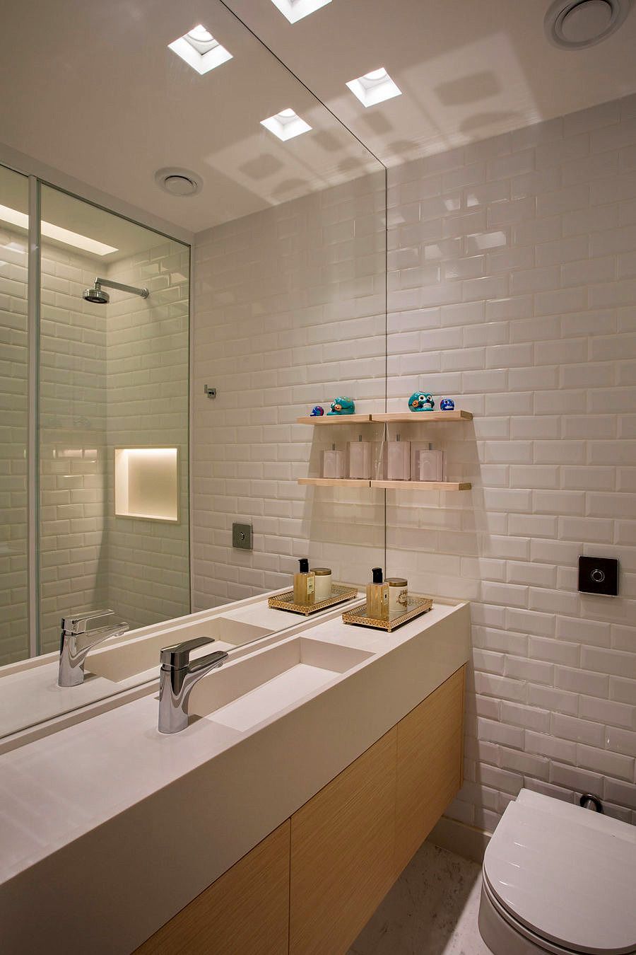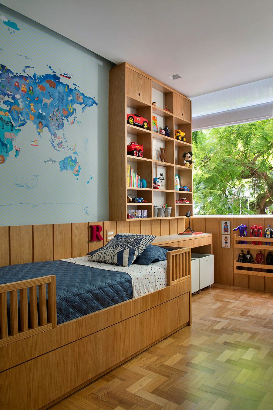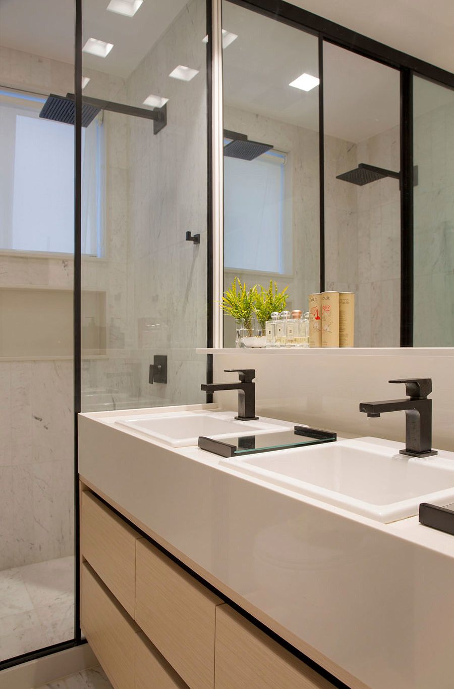 A decoração é contemporânea, prática e bastante funcional, pois todos os cômodos foram projetados para serem bastante usados pela família no dia a dia. Para evocar uma sensação de aconchego, a arquiteta abusou da madeira clara, sempre associada a cores neutras como branco e cinza. O objetivo desta composição foi tornar o décor mais leve e dar mais destaque aos móveis e às obras de arte.