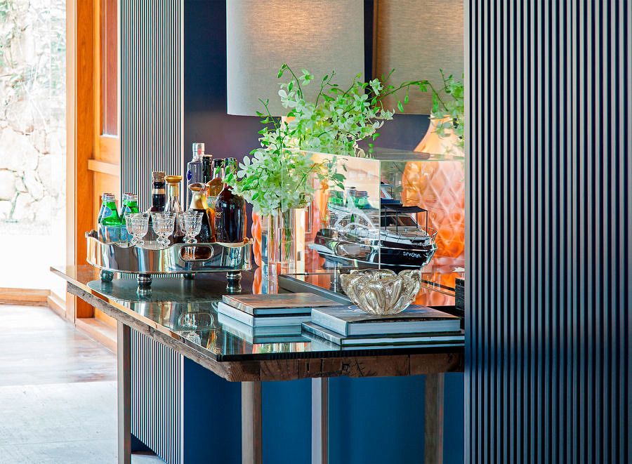 O principal desafio do escritório foi o curto prazo do projeto e a distância. Todo o projeto foi feito sem nenhuma intervenção civil, com exceção de uma adega que substituiu o jardim de inverno existente.