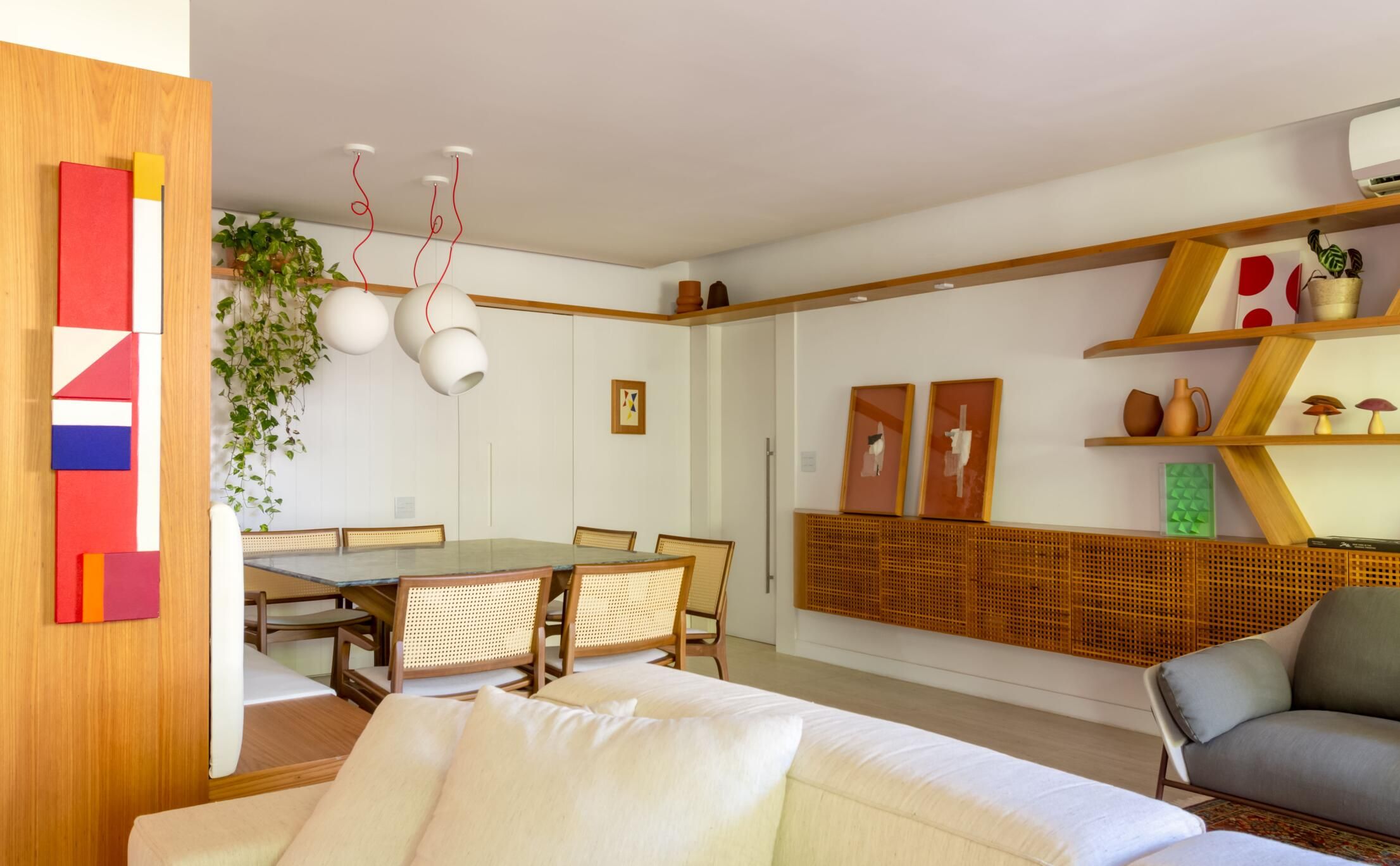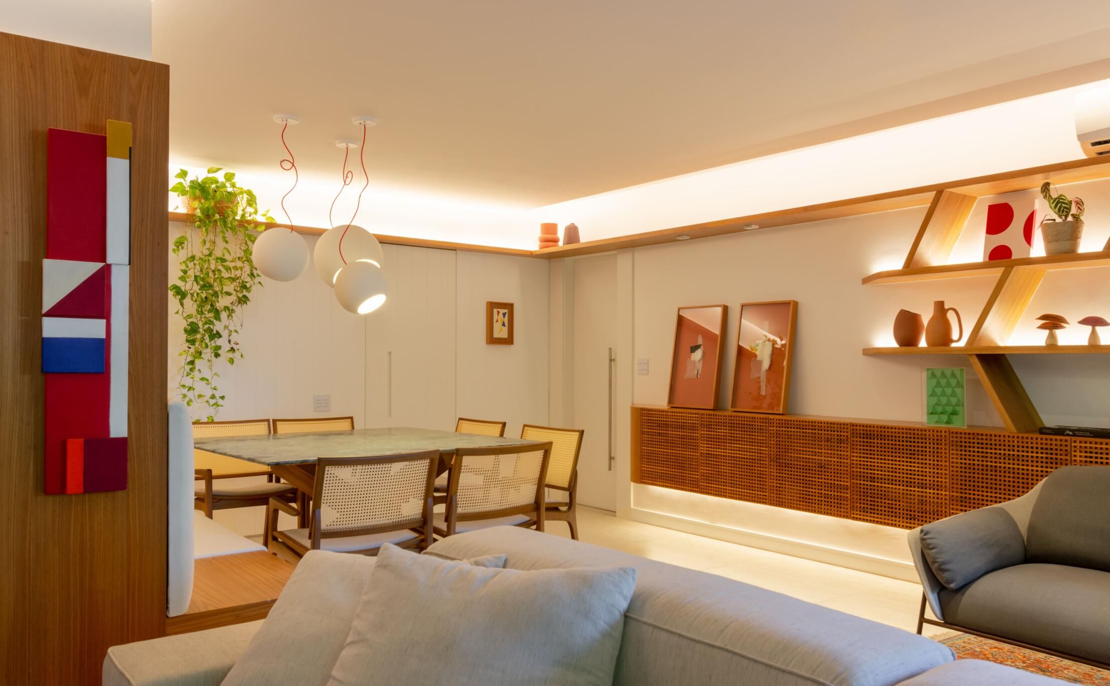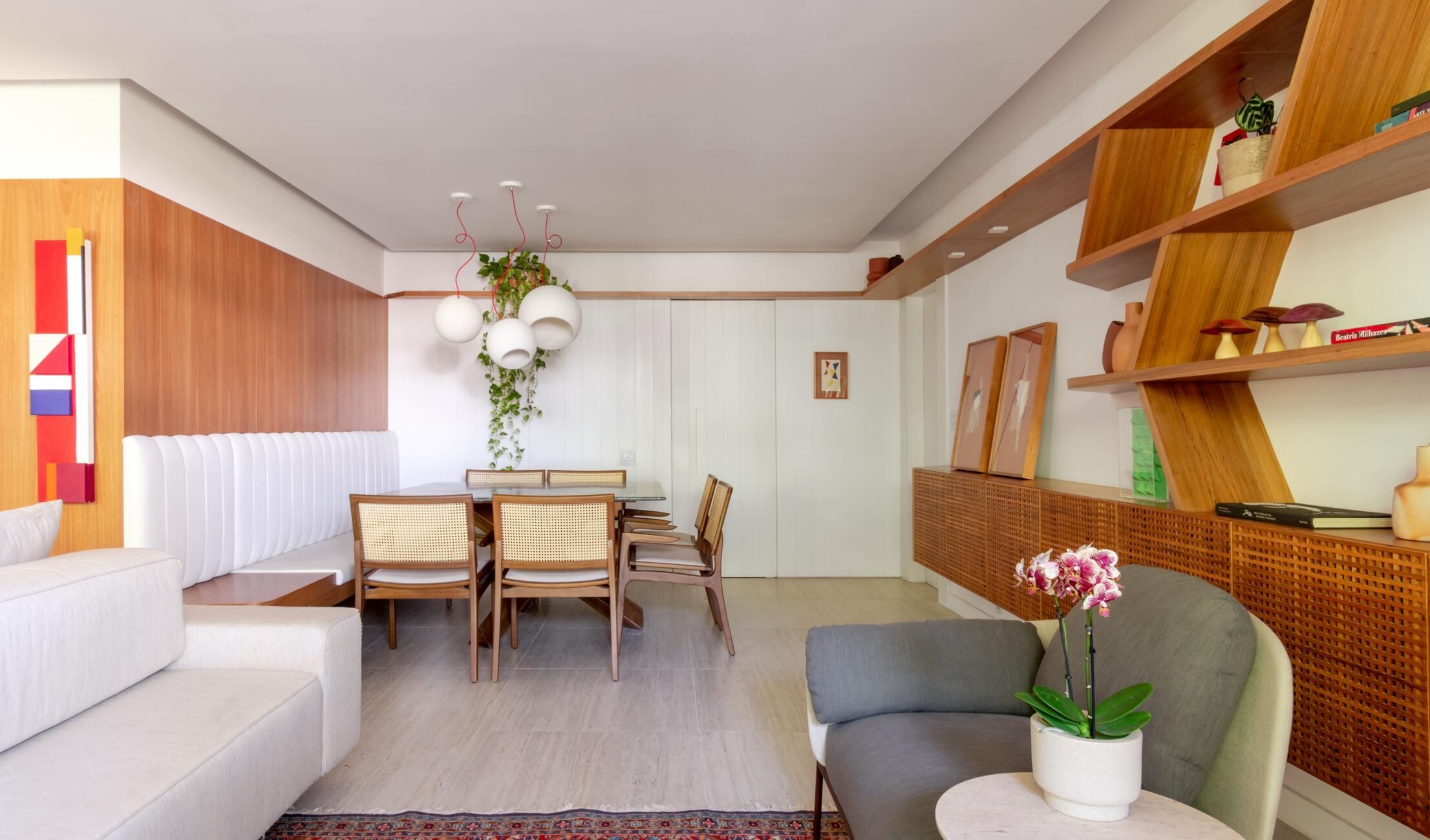 Mariana Monnerat foi chamada para idealizar a primeira moradia de um jovem casal, em parceria com Tainá Binato, e um dos grandes desafios foi como otimizar os 117m² do imóvel para receber amigos e curtir a vida a dois.
