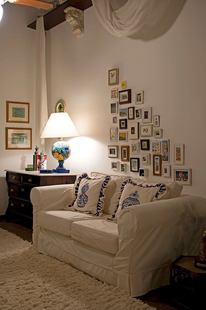 A sala íntima tem dois sofás em lona com mesa em laca branca. Uma estrutura central acomoda um lustre trazido de um antiquário da Argentina. Copos de vidro com velas iluminam nos dias de festas. Uma mesa em madeira abriga uma coleção de cachaças disponíveis aos convidados. A seu lado, a biblioteca da casa aonde todos são convidados a deixar seus livros já lidos para que possam ser compartilhados pelos outros que chegarão.