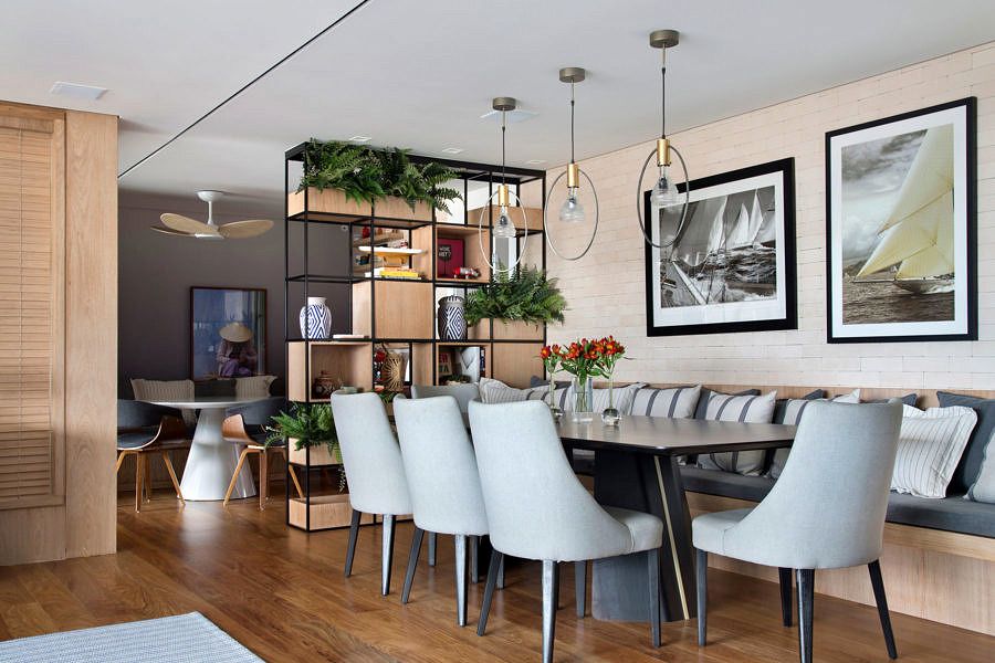 Um casal queria que o novo apartamento tivesse jeito de casa de praia, por isso procuraram o escritório Andrezza Alencar Interiores. Como gostam de receber em casa, pediram que os ambientes fossem integrados e os materiais práticos para manutenção.