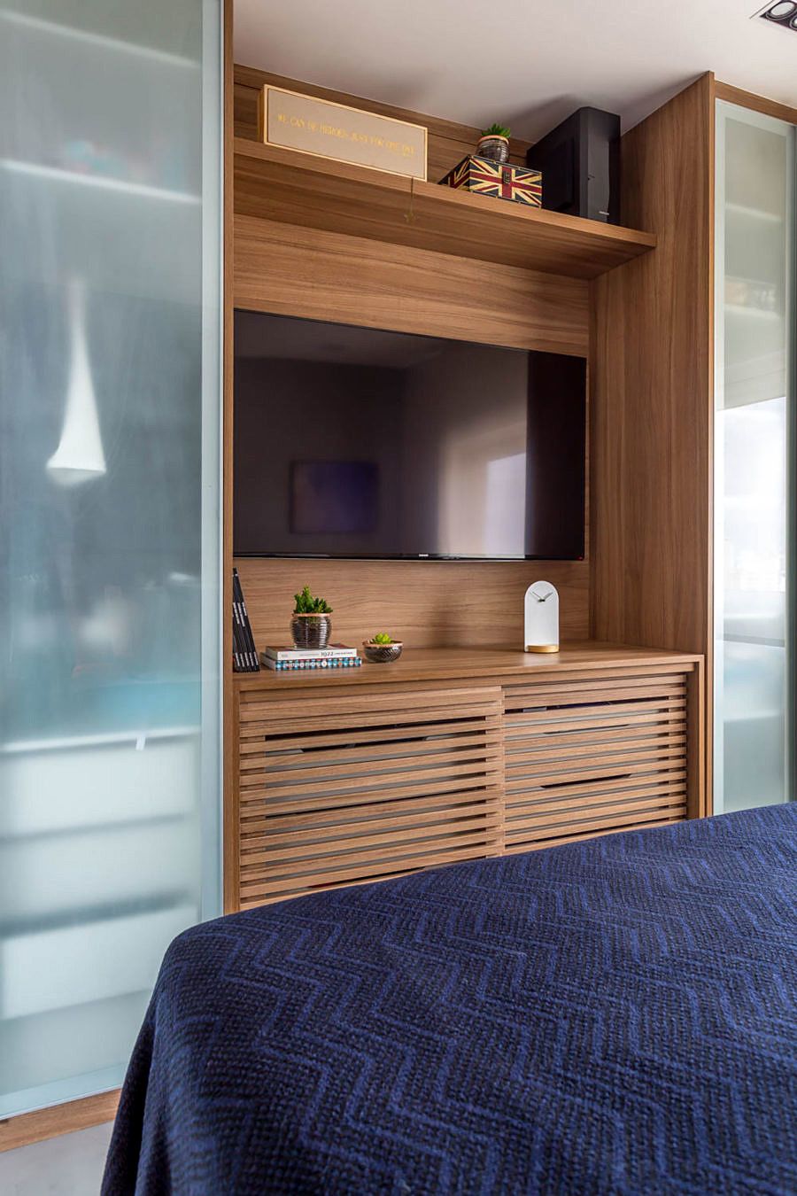 Isso permite que a luz natural entre e que se mantenha uma circulação de ar permanente quando as janelas dos quartos e varanda estiverem abertas.