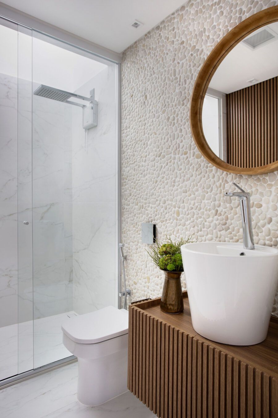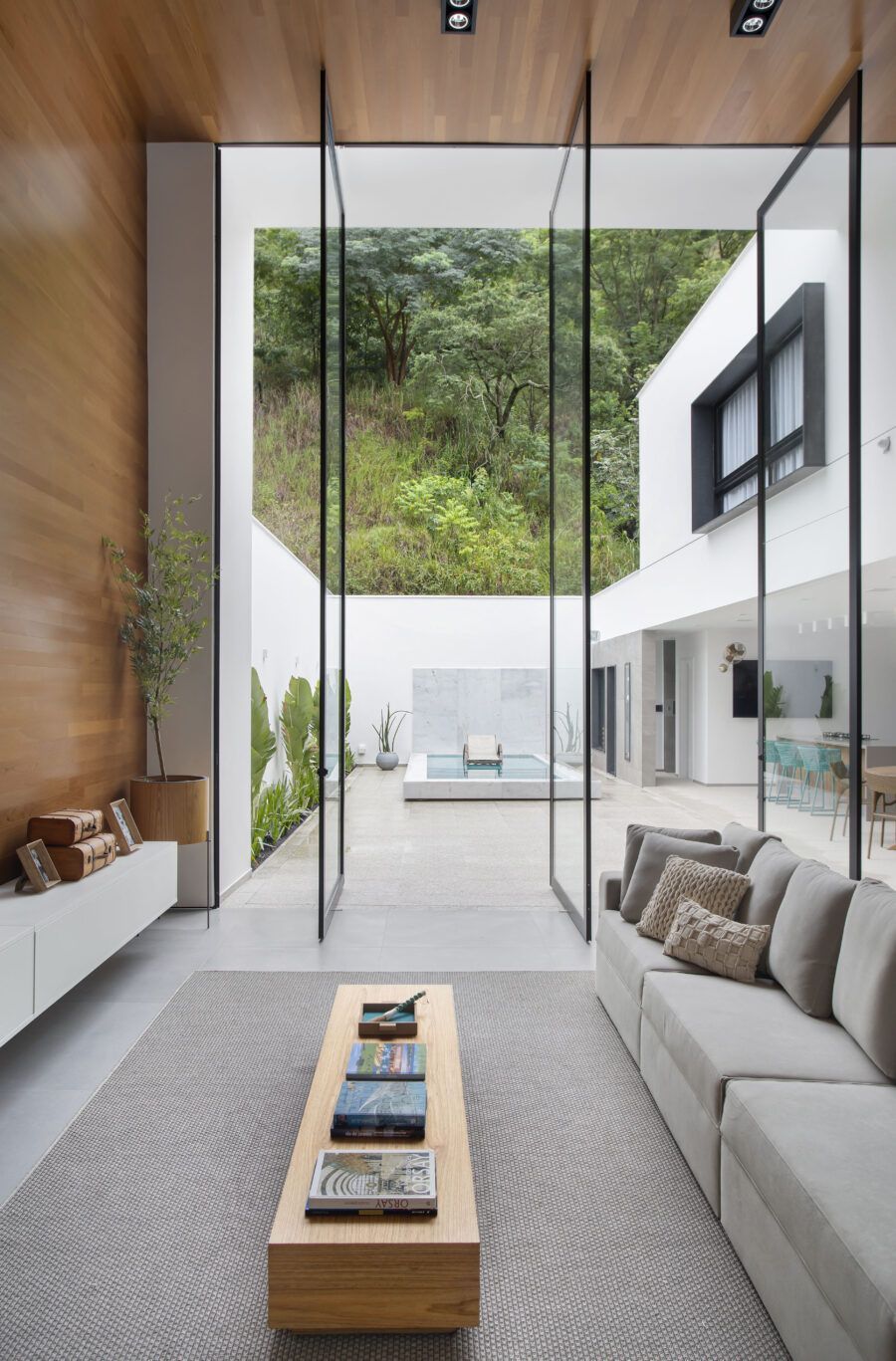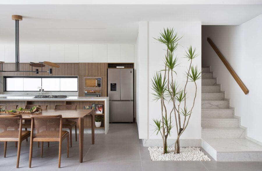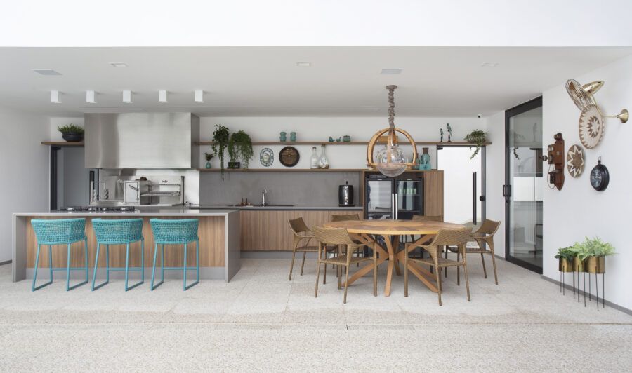 Com espaços conectados tanto fisicamente quanto por elementos visuais, o projeto surpreende pela amplitude e integração entre ambientes.