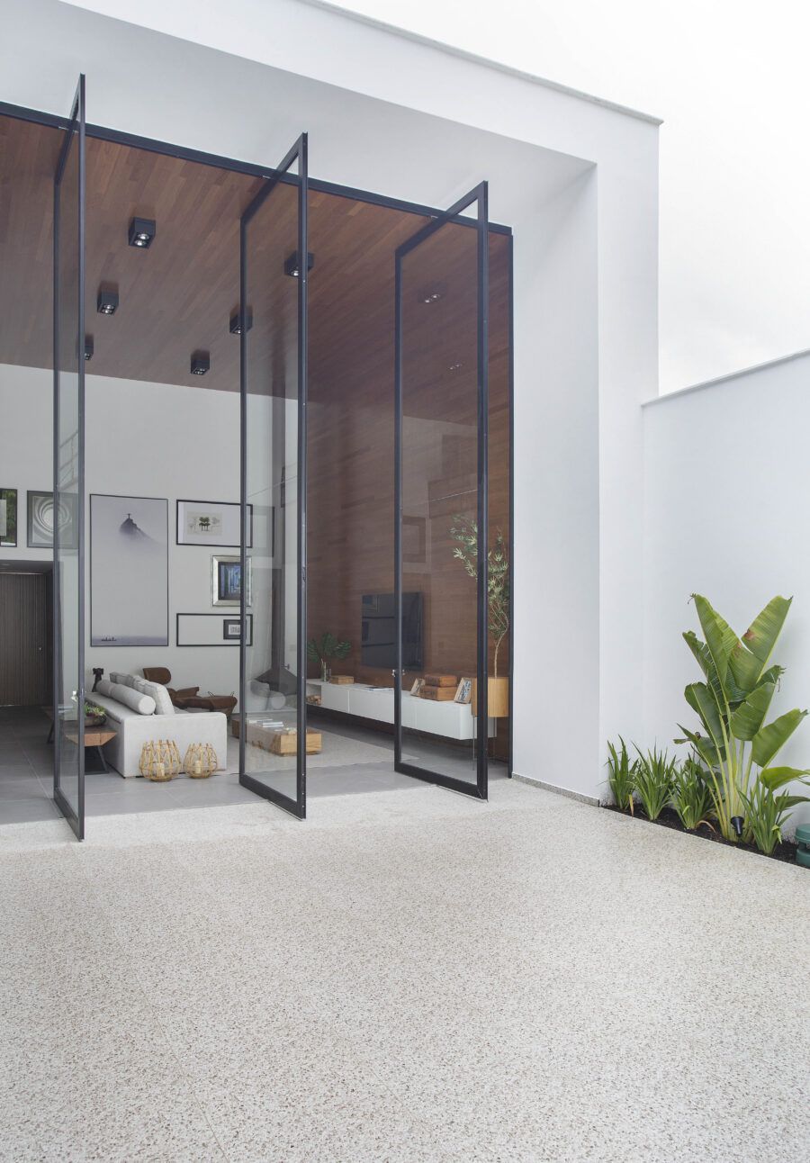 “Nosso maior desafio neste projeto foi o fato de o terreno ser muito úmido. Foi preciso instalar um sistema de drenagem e suspender o imóvel para evitar o contato da laje com o solo. Foram momentos de incertezas que que conseguimos superar e hoje podemos ver que todo o esforço valeu a pena.”