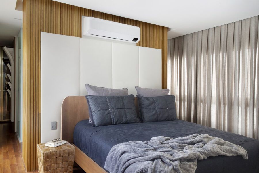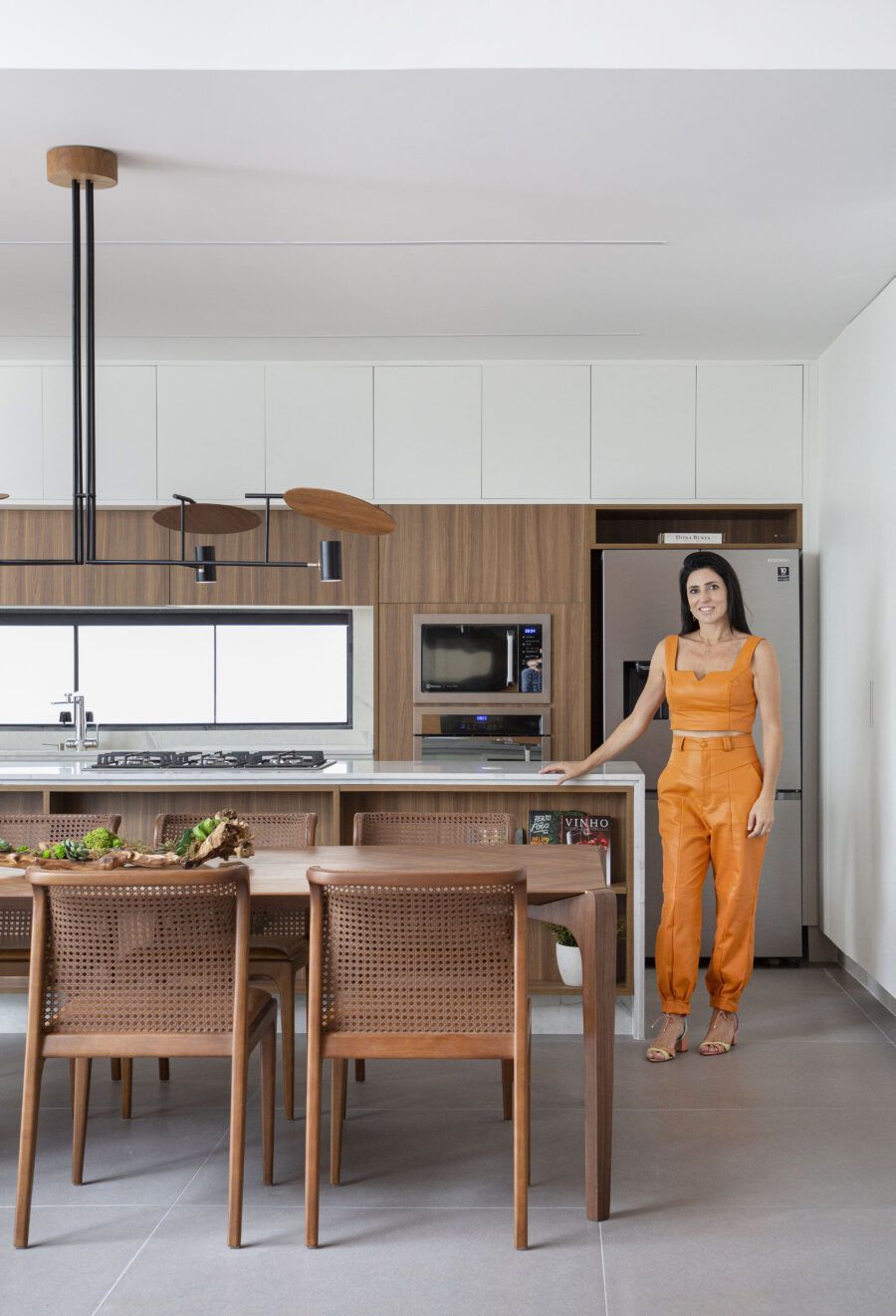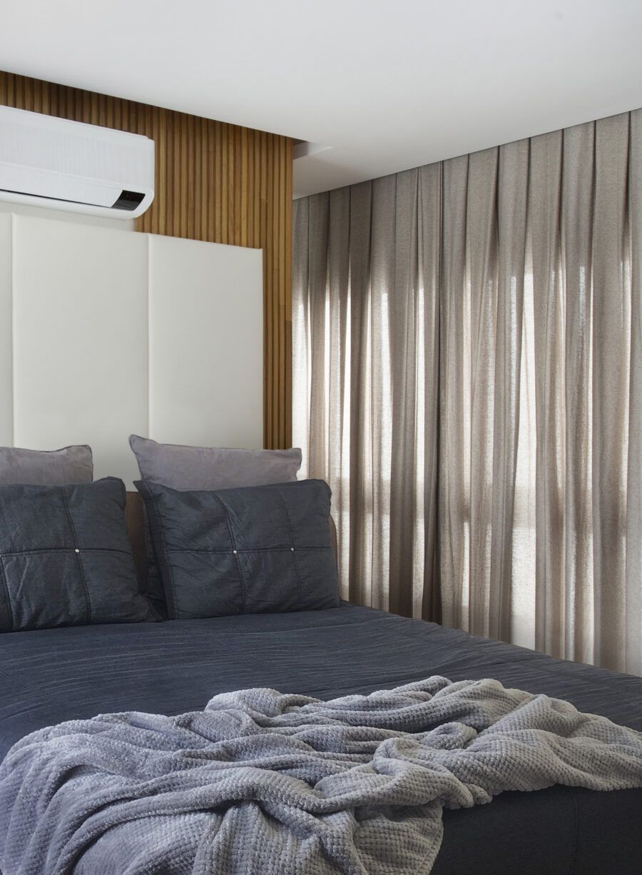 “A madeira entra como um elemento acolhedor, enquanto o branco faz a ligação entre os ambientes e serve de pano de fundo para a decoração. Já o cinza traz contemporaneidade ao espaço.”