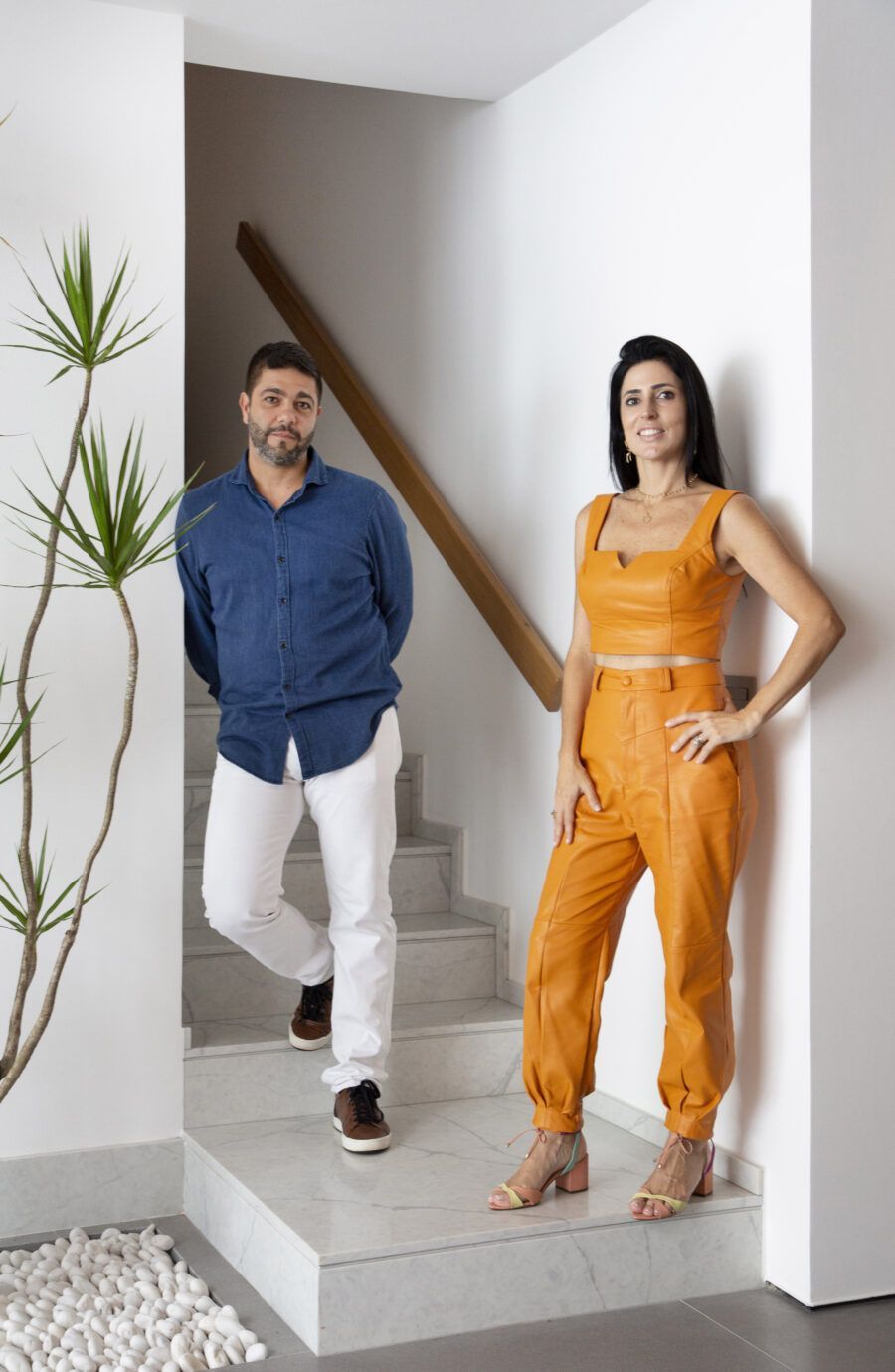 Para criar a sensação de conforto e acolhimento apesar do pé-direito alto, o casal de arquitetos pensou, também, na paleta de cores a ser seguida.