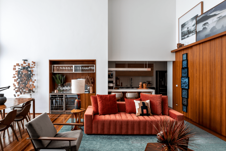 Uma personalização completa de imóvel recém-adquirido que valorizasse o pé direito duplo de quase 6 metros da área social. Essas eram as premissas para este projeto de arquitetura de interiores e decoração de um apartamento no Campo Belo, São Paulo, assinado pelo arquiteto Diego Revollo.