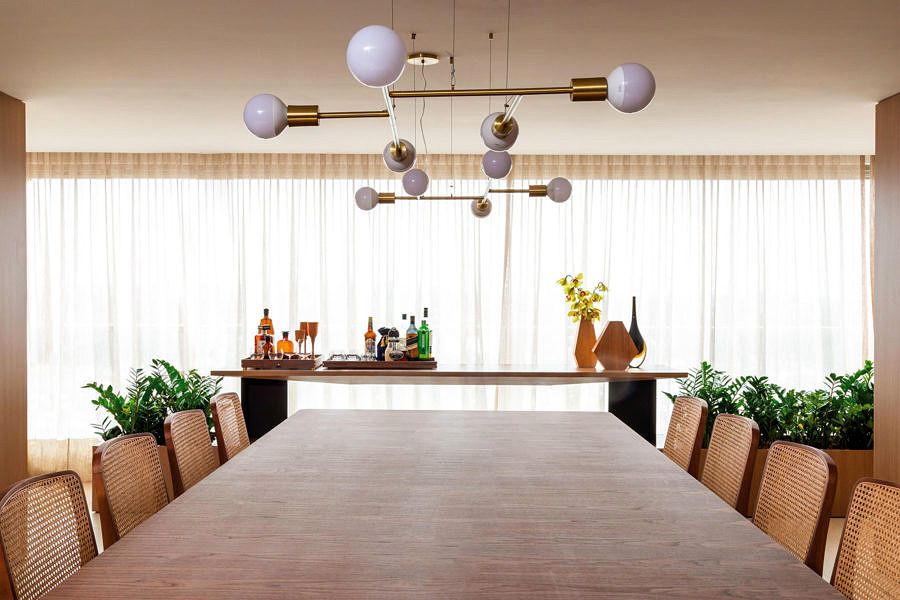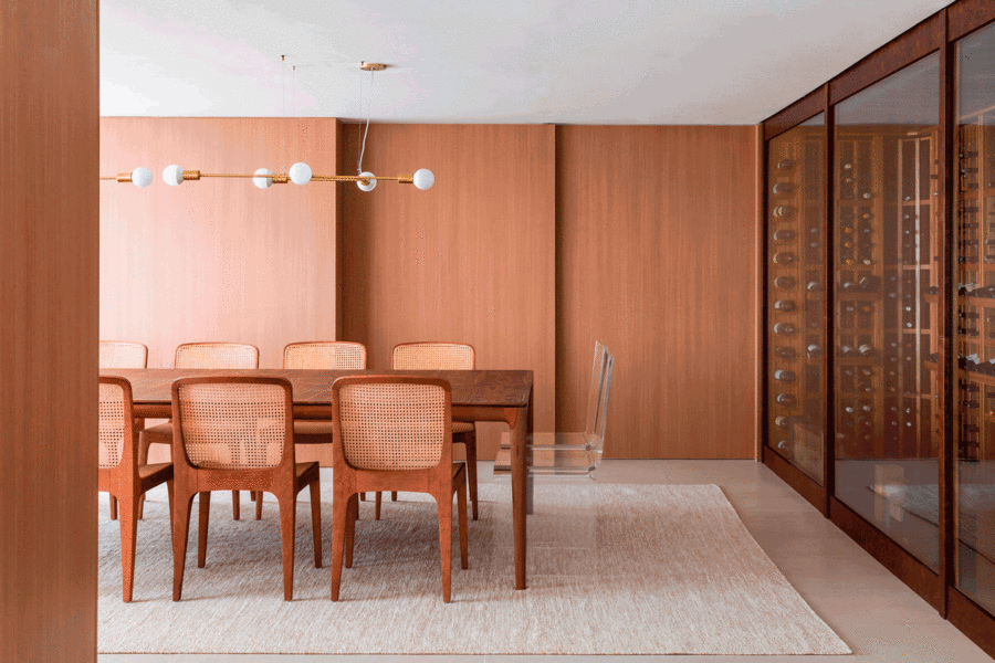 Fernanda Tegacini, Fernanda Morais e Nathalia Mouco, do escritório Très Arquitetura, assinam a reforma deste apartamento de 480m², em São Paulo. Um dos pedidos dos moradores, um casal com um filho de dois anos, foi incorporar a varanda ao estar, para mais conforto dos convidados, o layout visa integração dos espaços e foi pensado para grandes recepções.